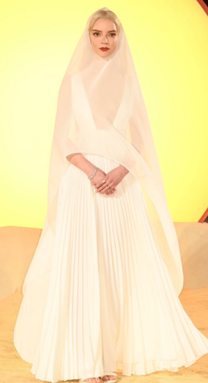 La sorpresa de la noche fue Anya Taylor-Joy, quien lució un vestido blanco de Dior, confirmando un papel misterioso en la película y dejando Internet para intentar deducir de su estilo místico qué papel desempeñará.