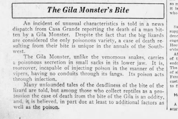 La anterior víctima mortal registrada por la mordedura de un monstruo de Gila se remonta a 1930, un caso que ni siquiera figuraba en los registros médicos.