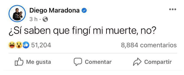 El primer mensaje que se publicó en las diversas redes del “Pelusa" fue: “¿Sí saben que fingí mi muerte, no?”, publicación que de inmediato comenzó a hacer ruido y en pocos minutos llegó a tener 28 mil reacciones. Los mensajes continuaron con un estado haciendo referencia al “anime”, donde aseguró que One Piece es mejor obra que cualquiera de la actualidad.
