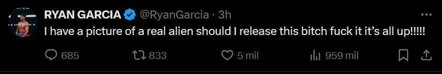 La conducta de García continúo hasta el martes. Durante todo el día el boxeador publicó mensajes extraños en X, antes Twitter.