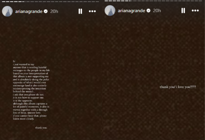 Tras el lanzamiento del nuevo álbum de Ariana Grande, "Eternal Sunshine", la artista recurrió a Instagram para pedirle a sus fans que dejaran de enviar "mensajes de odio" en redes sociales.