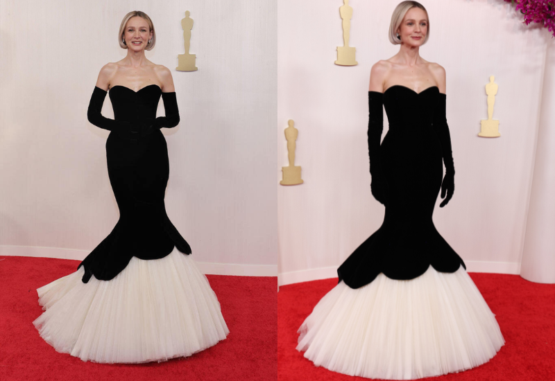 El vestido Balenciaga personalizado de Carey Mulligan presentaba una elegante falda de sirena acampanada. La nominada a Mejor Actriz usó joyas de Fred Leighton y fue una de varias estrellas que usaron guantes de noche negros.