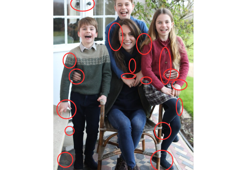 - La mano con la que agarra Kate al príncipe Louis está borrosa.