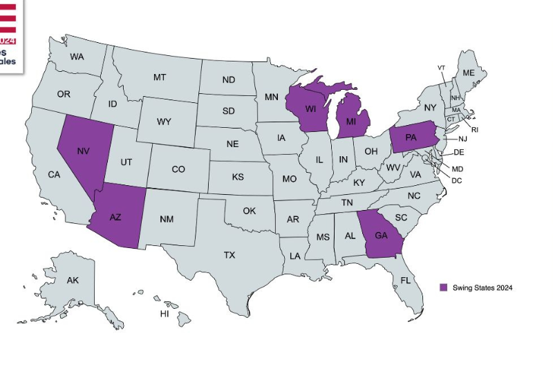 Los swing states (estados péndulo) son estados en los que tanto el Partido Demócrata como el Republicano tienen probabilidades similares de ganar.