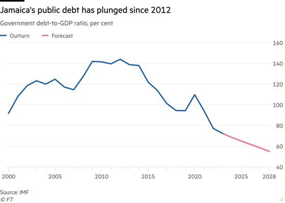 Pero espero que una última lección quede un poco más clara. El camino de Jamaica puede haber sido posible, ¿pero fue deseable? Seguramente, no tenía opciones fáciles. Y más recientemente, hay señales de que sus esfuerzos han sido recompensados. Joydeep Mukherji, de la agencia de calificación crediticia S&P, señala que el gobierno ha recuperado el acceso al mercado, que está utilizando para cambiar el perfil de su deuda. En octubre pasado incluso emitió un bono internacional en su propia moneda.