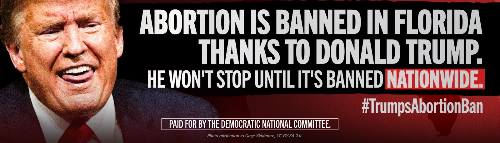 Con la decisión de la Corte Suprema de Florida la semana pasada, que desencadena una prohibición casi total de la atención del aborto, el Comité Nacional Demócrata está lanzando una campaña de vallas publicitarias en todo el estado criticando a Donald Trump por hacer posible esta medida extrema mientras planea prohibir el aborto en todo el país.
