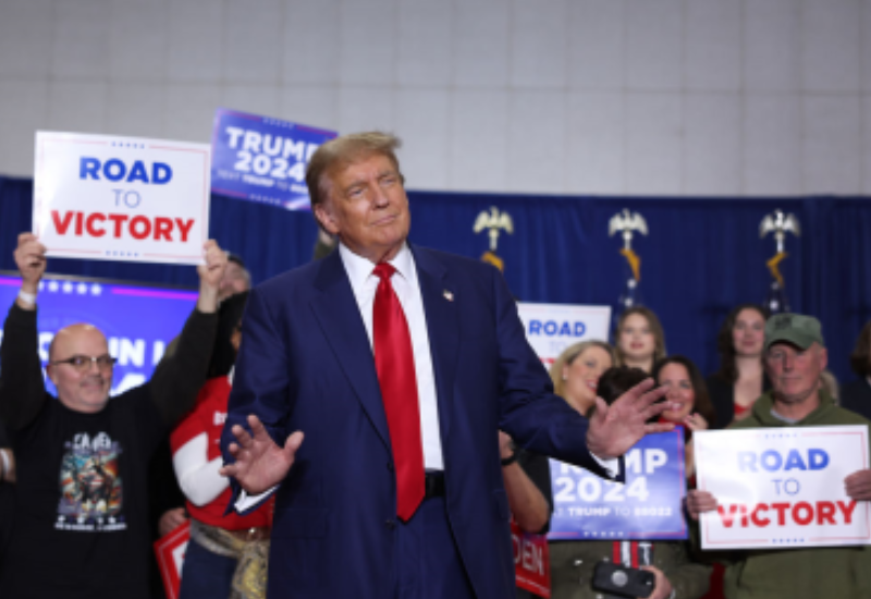 El ex presidente Donald Trump habla en un mitin el 2 de abril en Green Bay, Wisconsin. Foto de Scott Olson/Getty Images.