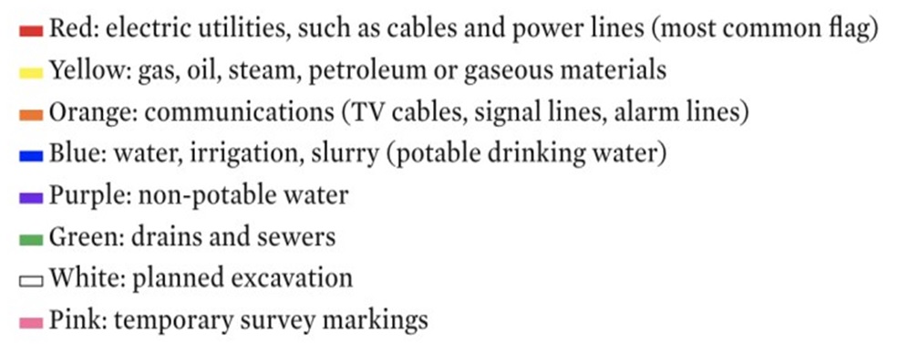 Rojo: servicios eléctricos, como cables y líneas de alta tensión (bandera más común)