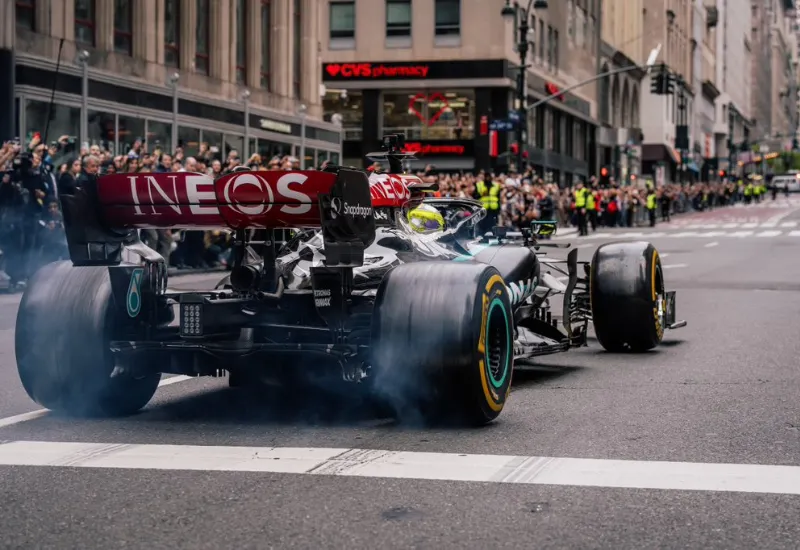 Hamilton pasea en auto de F1 por Nueva York