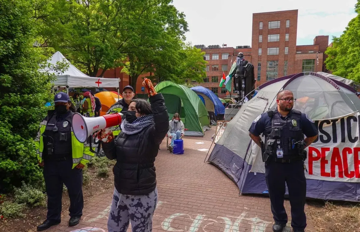 Las protestas pro Palestina en la Universidad George Washington están en su séptimo día, transformando los alrededores de la facultad de Derecho en un bullicioso centro de actividad, reseña WJLA.