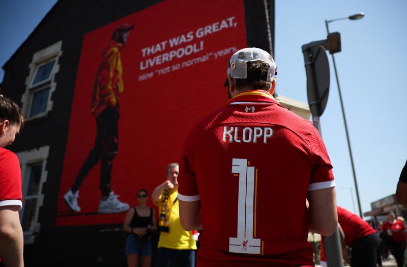 Aficionados posan frente a un mural del entrenador del Liverpool, Jurgen Klopp, antes del partido de fútbol de la Premier League inglesa del Liverpool FC contra el Wolverhampton Wanderers en Liverpool, Gran Bretaña, el 19 de mayo de 2024. (Reino Unido) EFE/EPA/ADAM VAUGHAN.Aficionados posan con una pancarta frente a un mural del entrenador del Liverpool, Jurgen Klopp, antes del partido de fútbol de la Premier League inglesa del Liverpool FC contra el Wolverhampton Wanderers en Liverpool, Gran Bretaña, el 19 de mayo de 2024. (Reino Unido) EFE/EPA/ADAM VAUGHAN.Seguidores del Liverpool celebran la salida del entrenador Juergen Klopp durante el partido de fútbol de la Premier League inglesa del Liverpool FC contra el Wolverhampton Wanderers, en Liverpool, Gran Bretaña, el 19 de mayo de 2024. (Reino Unido) EFE/EPA/ADAM VAUGHAN.
