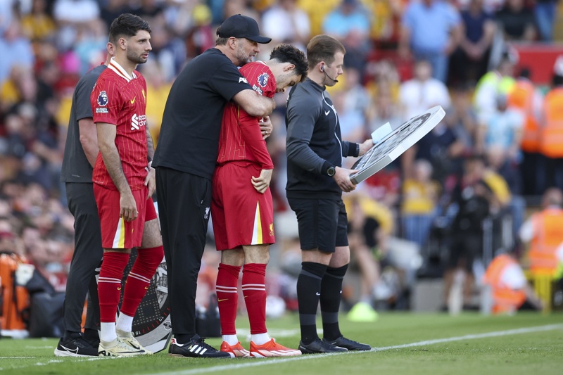 El entrenador del Liverpool, Jurgen Klopp (I), abraza a Virgil van Dijk (C), del Liverpool, tras su último partido con el Liverpool, después del partido de fútbol de la Premier League inglesa del Liverpool FC contra el Wolverhampton Wanderers, en Liverpool, Gran Bretaña, 19 de mayo de 2024. (Reino Unido) EFE/EPA/ADAM VAUGHAN.El entrenador del Liverpool, Jurgen Klopp (i), abraza a Curtis Jones, del Liverpool, durante el partido de fútbol de la Premier League inglesa del Liverpool FC contra el Wolverhampton Wanderers, en Liverpool, Gran Bretaña, el 19 de mayo de 2024. (Reino Unido) EFE/EPA/ADAM VAUGHAN.El entrenador del Liverpool, Jurgen Klopp (d), abraza a Darwin Núñez, del Liverpool (i), durante el partido de fútbol de la Premier League inglesa del Liverpool FC contra el Wolverhampton Wanderers, en Liverpool, Gran Bretaña, el 19 de mayo de 2024. (Reino Unido) EFE/EPA/ADAM VAUGHAN.El entrenador del Liverpool, Jurgen Klopp (i), abraza a Luis Díaz, del Liverpool (d), se dan la mano durante el partido de fútbol de la Premier League inglesa del Liverpool FC contra el Wolverhampton Wanderers, en Liverpool, Gran Bretaña, el 19 de mayo de 2024. (Reino Unido) EFE/EPA/ADAM VAUGHAN ÚNICAMENTE PARA USO EDITORIAL.El entrenador del Liverpool, Jurgen Klopp, habla tras su último partido con el Liverpool después del partido de fútbol de la Premier League inglesa del Liverpool FC contra el Wolverhampton Wanderers, en Liverpool, Gran Bretaña, el 19 de mayo de 2024. (Reino Unido) EFE/EPA/ADAM VAUGHAN.