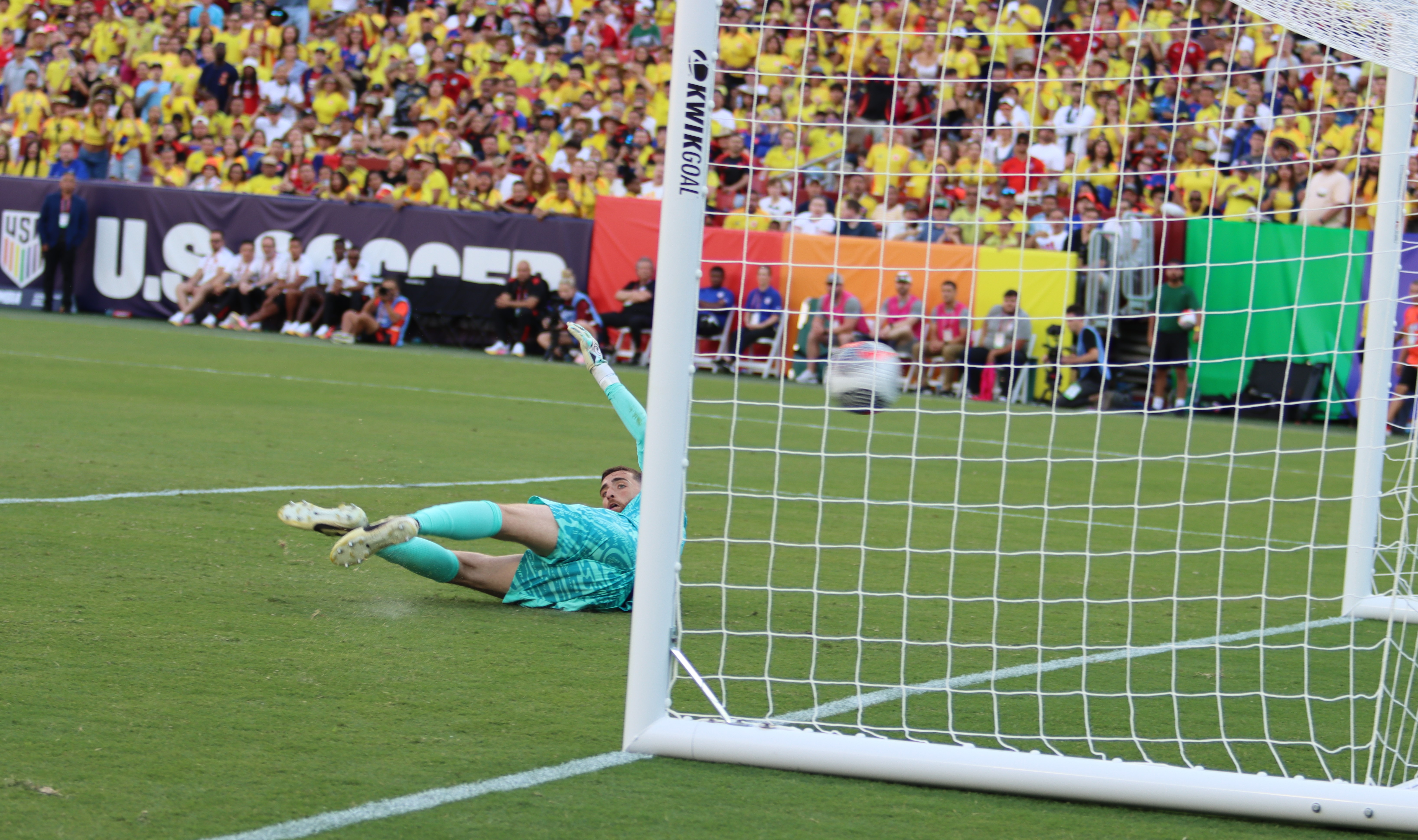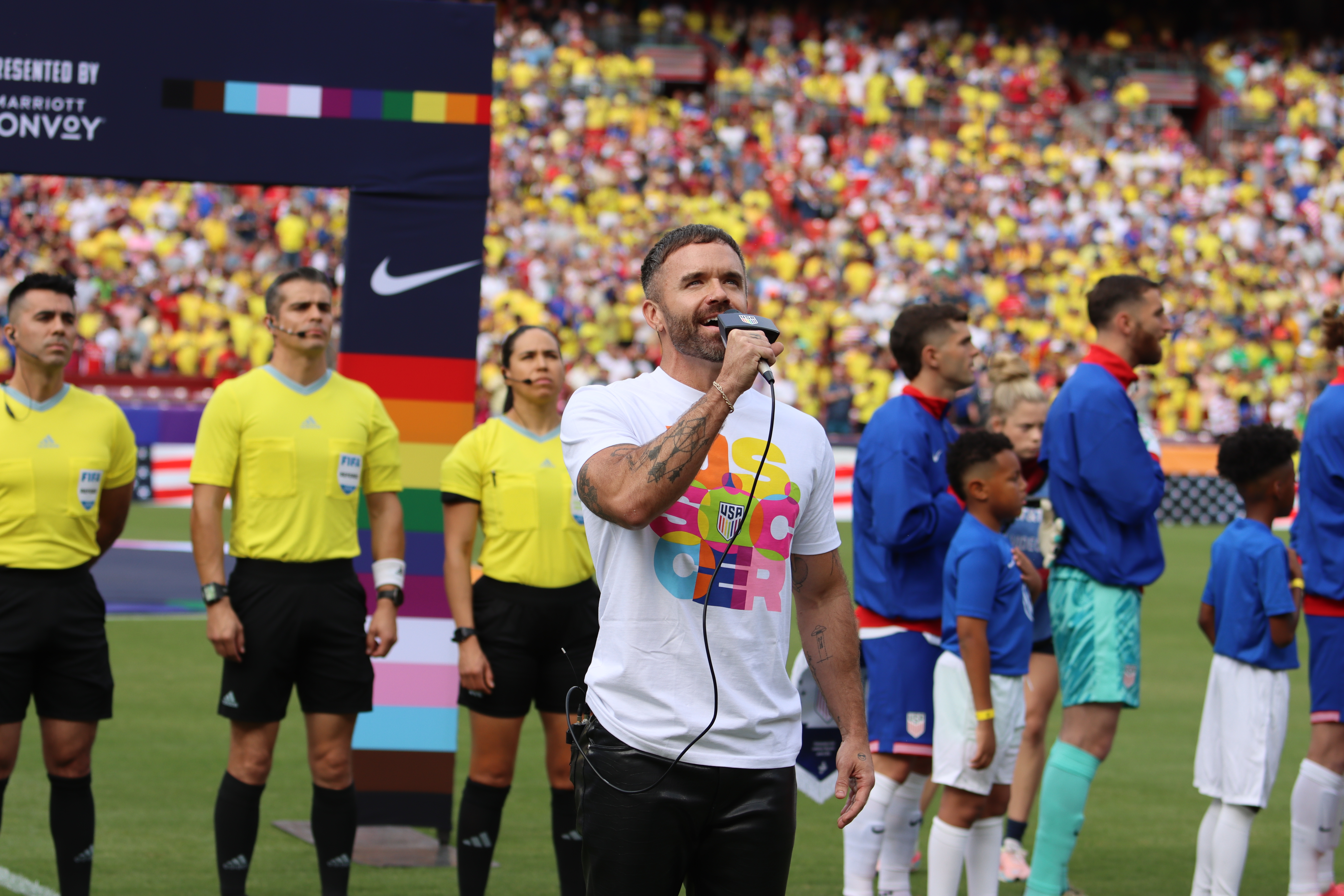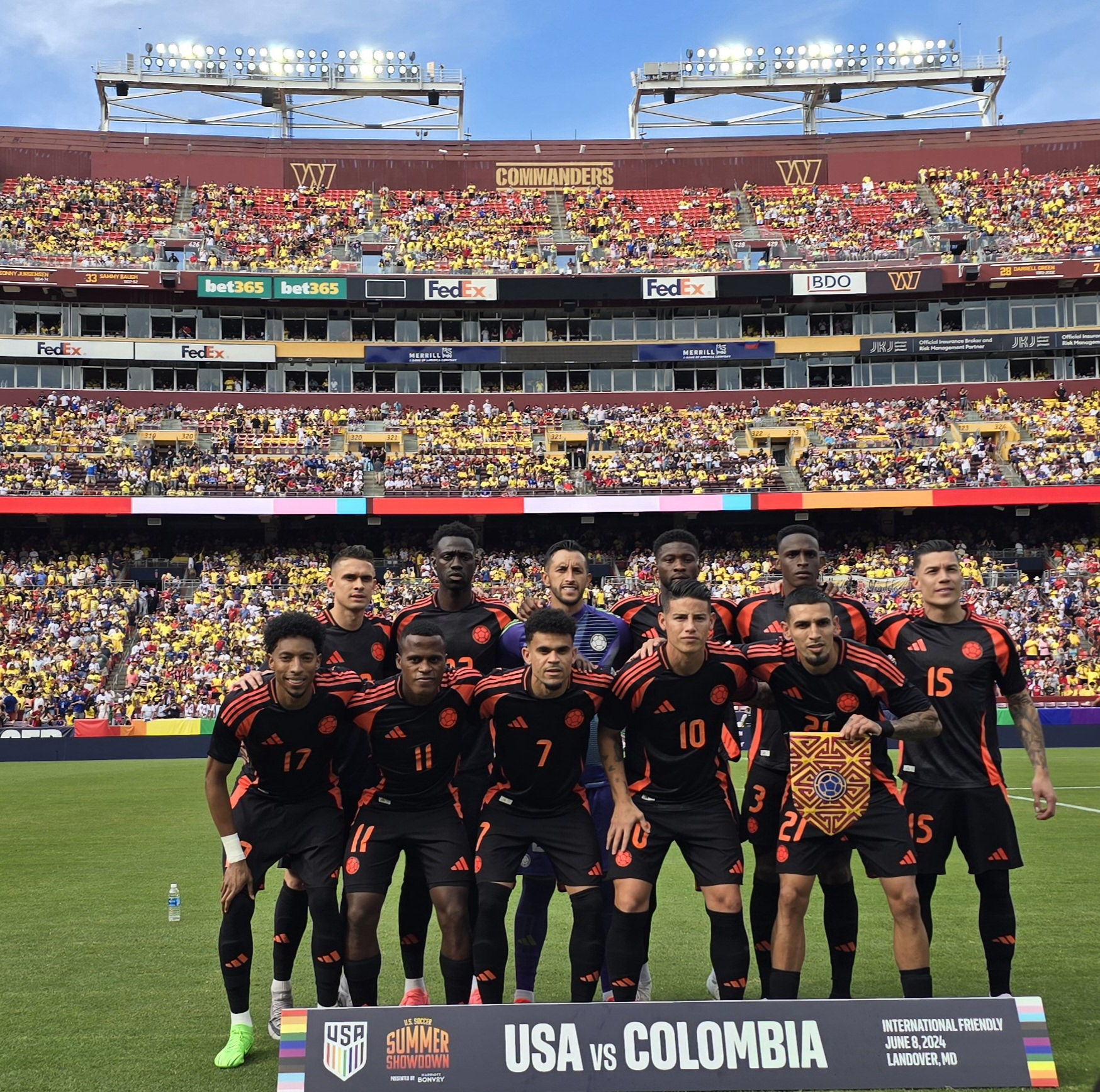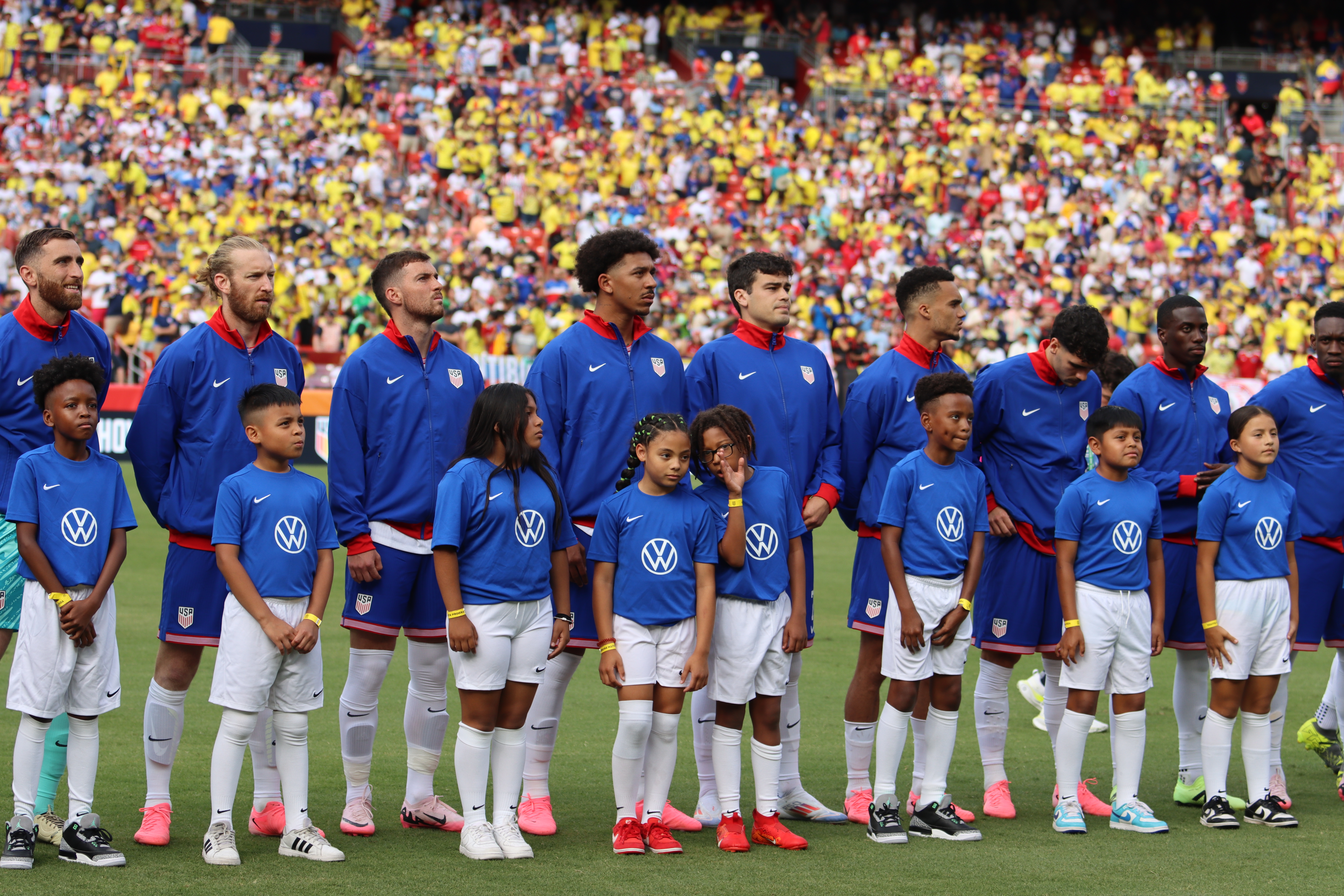Ante una multitud mayoritariamente colombiana en un mar de camisetas amarillas en el Commanders Field, en la capital de la nación, los jugadores estadounidenses lucieron números en arcoíris en sus camisetas por el Mes del Orgullo.