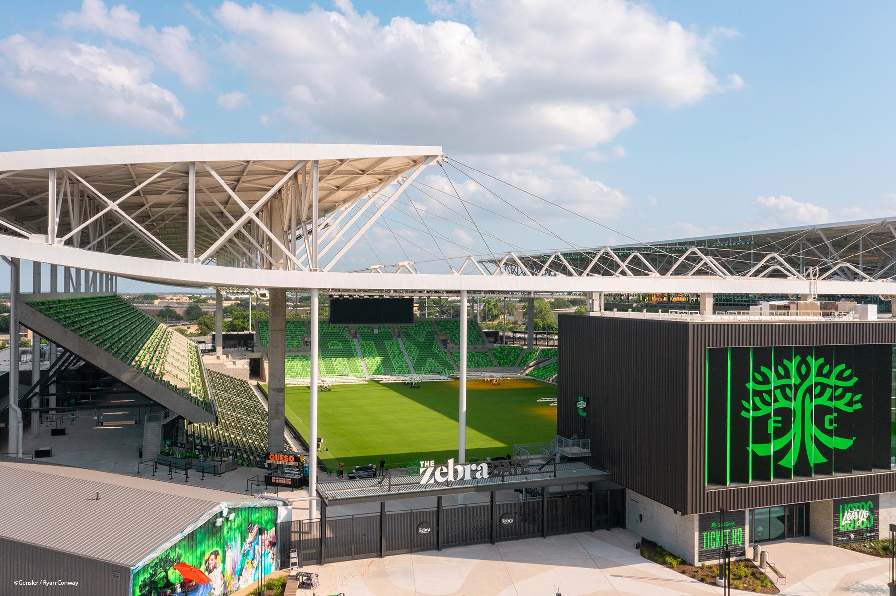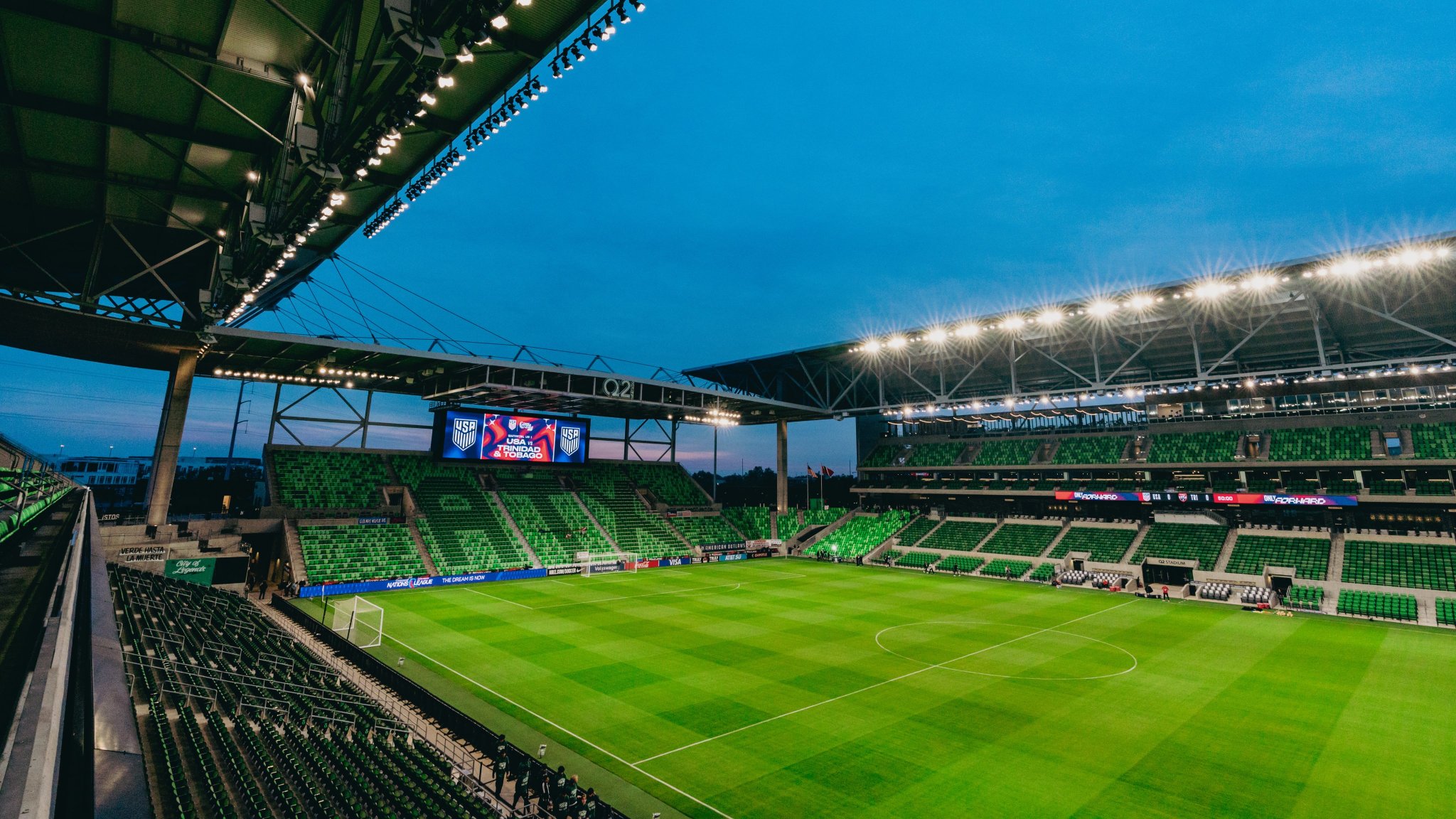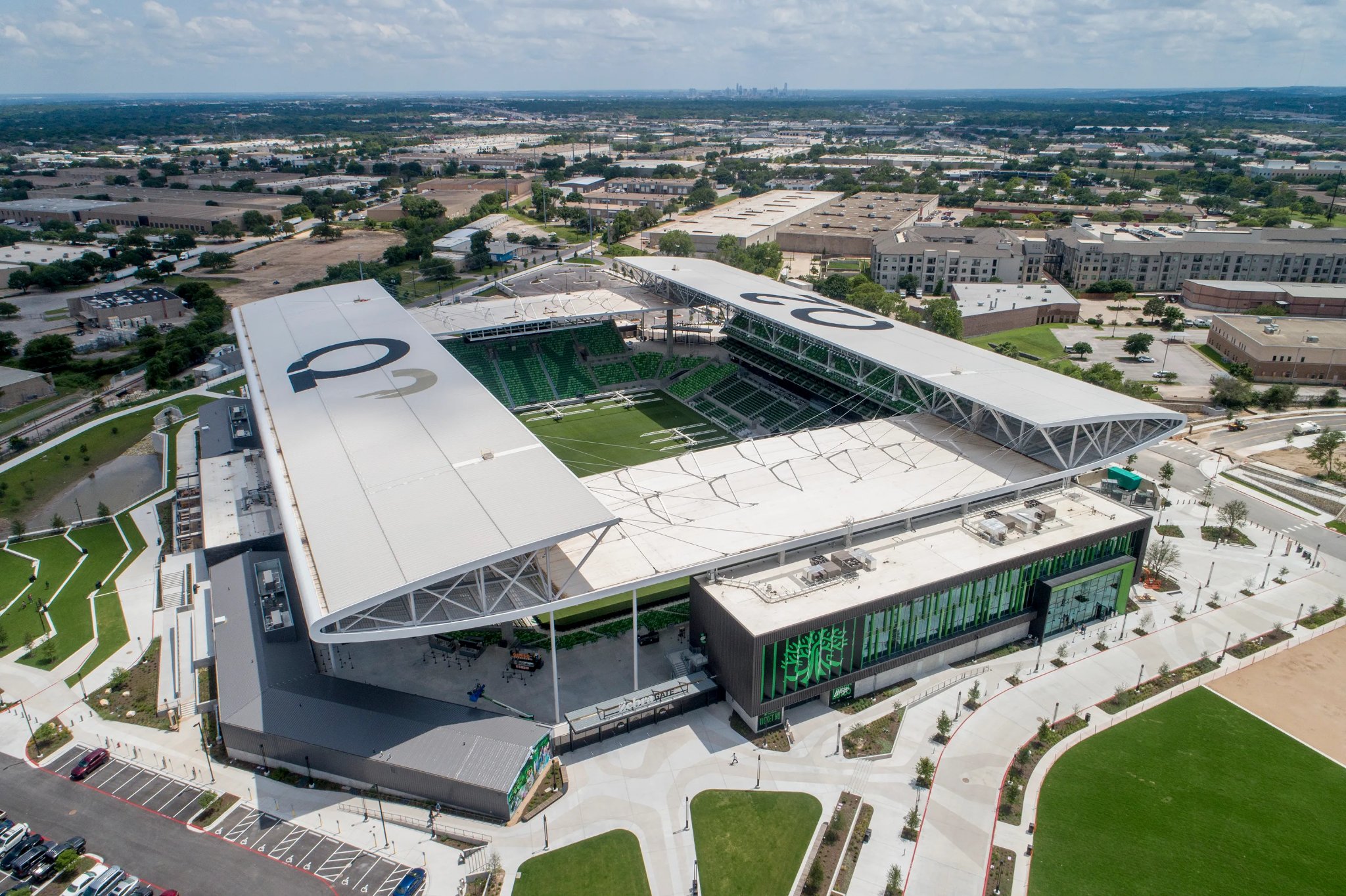 Construido en 2021, el Q2 Stadium es el orgulloso hogar del Austin FC de la MLS. En distingue por su diseño respetuoso con el medio ambiente, que le ha valido la prestigiosa certificación LEED Oro. Este galardón, que forma parte de un programa estadounidense que premia los avances en materia de medio ambiente y salud humana, subraya los esfuerzos de sostenibilidad del estadio.