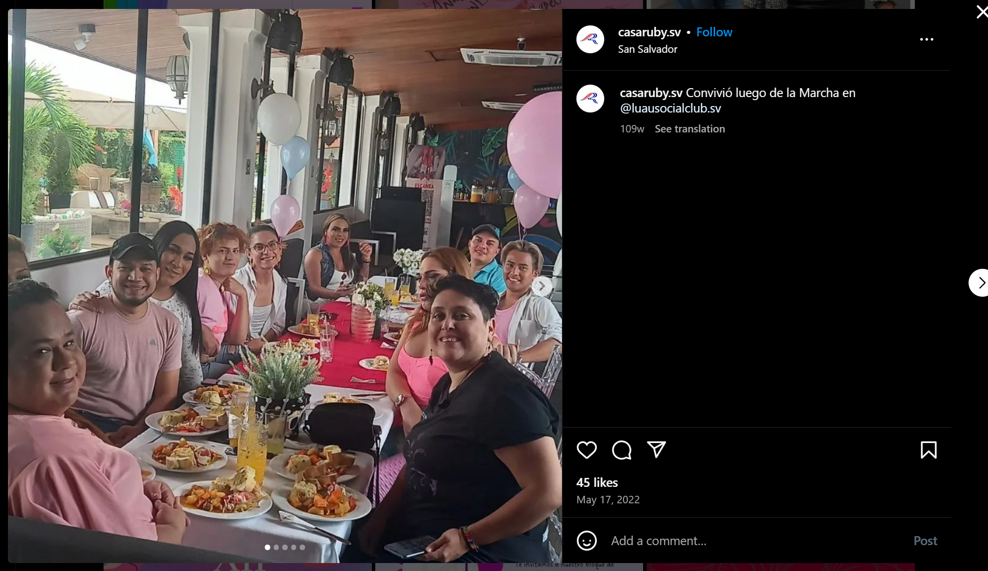 Luau servía también como fachada de la supuesta Casa Ruby El Salvador. Corado organizaba fiestas con strippers, drags y nudistas para luego postear fotografías con leyendas sobre el supuesto trabajo y acciones que realizaba la institución fantasma.