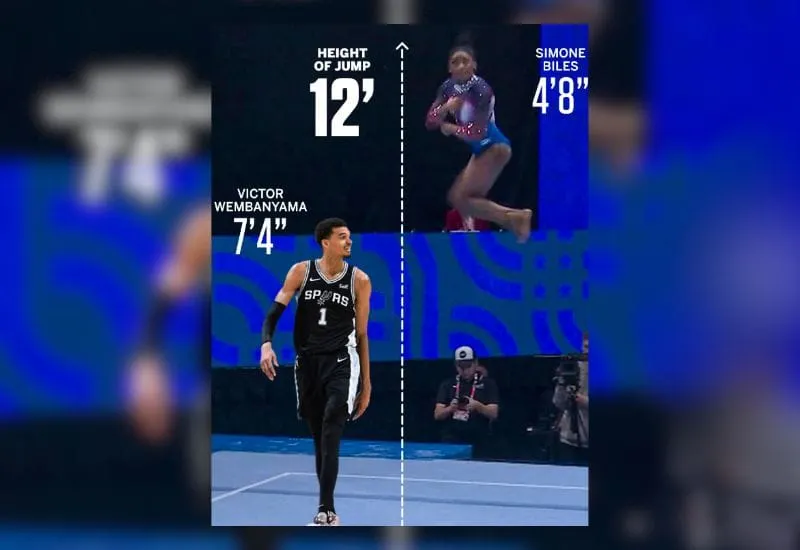 El salto de Biles, que supera por 10 centímetros la altura de Wembanyama (2.24 m), generó gran revuelo en las redes sociales. Los aficionados comparan sus habilidades con las de jugadores de baloncesto e incluso atletas de campo y pista.