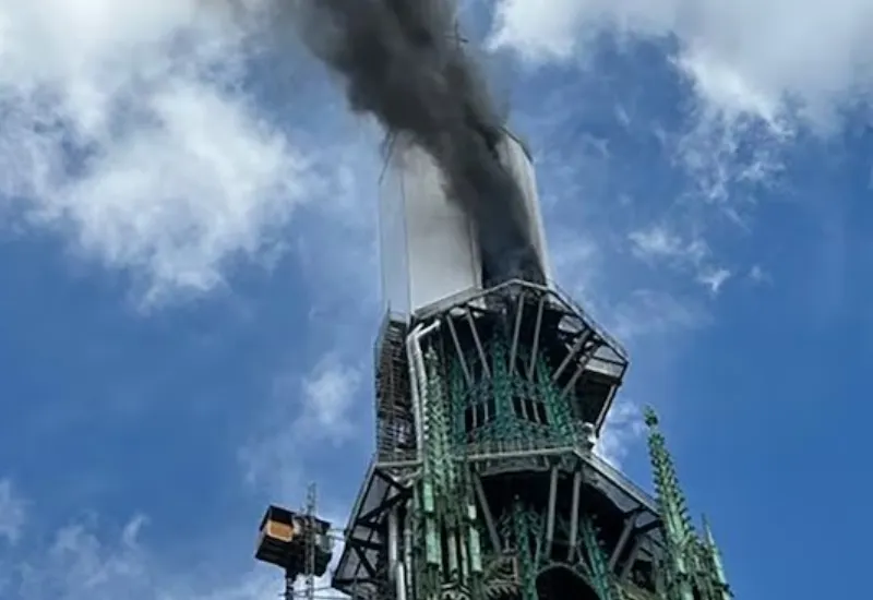 Los testigos describieron el humo que emanaba de la aguja, lo que trajo a la memoria el catastrófico incendio de la catedral de Notre Dame en 2019. Aquel incendio había provocado el derrumbe de su aguja e importantes daños en su tejado.