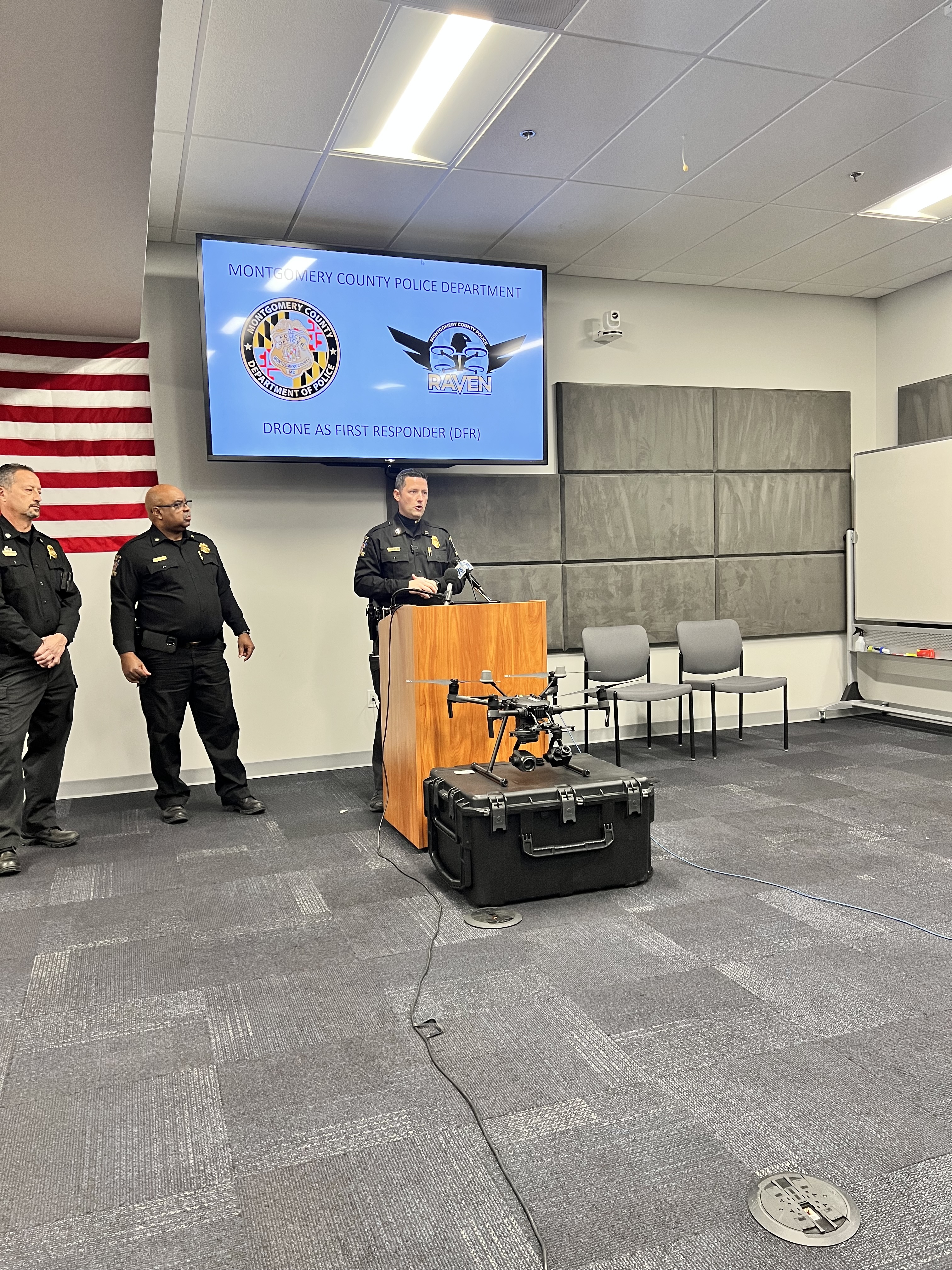 Los dos drones de respuesta de Montgomery —Raven 1 y Raven 2— están equipados con cámaras de video que pueden acercar lo que alguien tiene en la mano y rastrear sus movimientos. Los operadores de drones también pueden enviar el video a las computadoras portátiles, tabletas o teléfonos celulares de los oficiales de tierra.