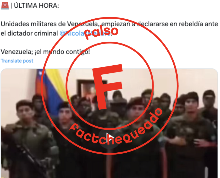 Circuló en X (antes Twitter) un video que muestra a un grupo de militares declarándose “en rebeldía” contra el régimen de Nicolás Maduro. La cuenta que publicó el video el 29 de julio de 2024 afirmó que el hecho acababa de ocurrir. Pero eso es falso. El video es de 2017.