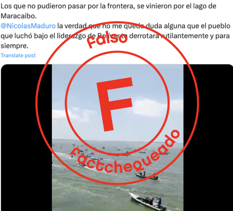 “Los que no pudieron pasar por la frontera, se vinieron por el lago de Maracaibo”. Así titularon el 28 de julio de 2024 algunas cuentas que compartieron un video donde se observa a un grupo de embarcaciones en el lago de Maracaibo, ubicado en el estado Zulia, fronterizo con Colombia. Pero eso es falso.