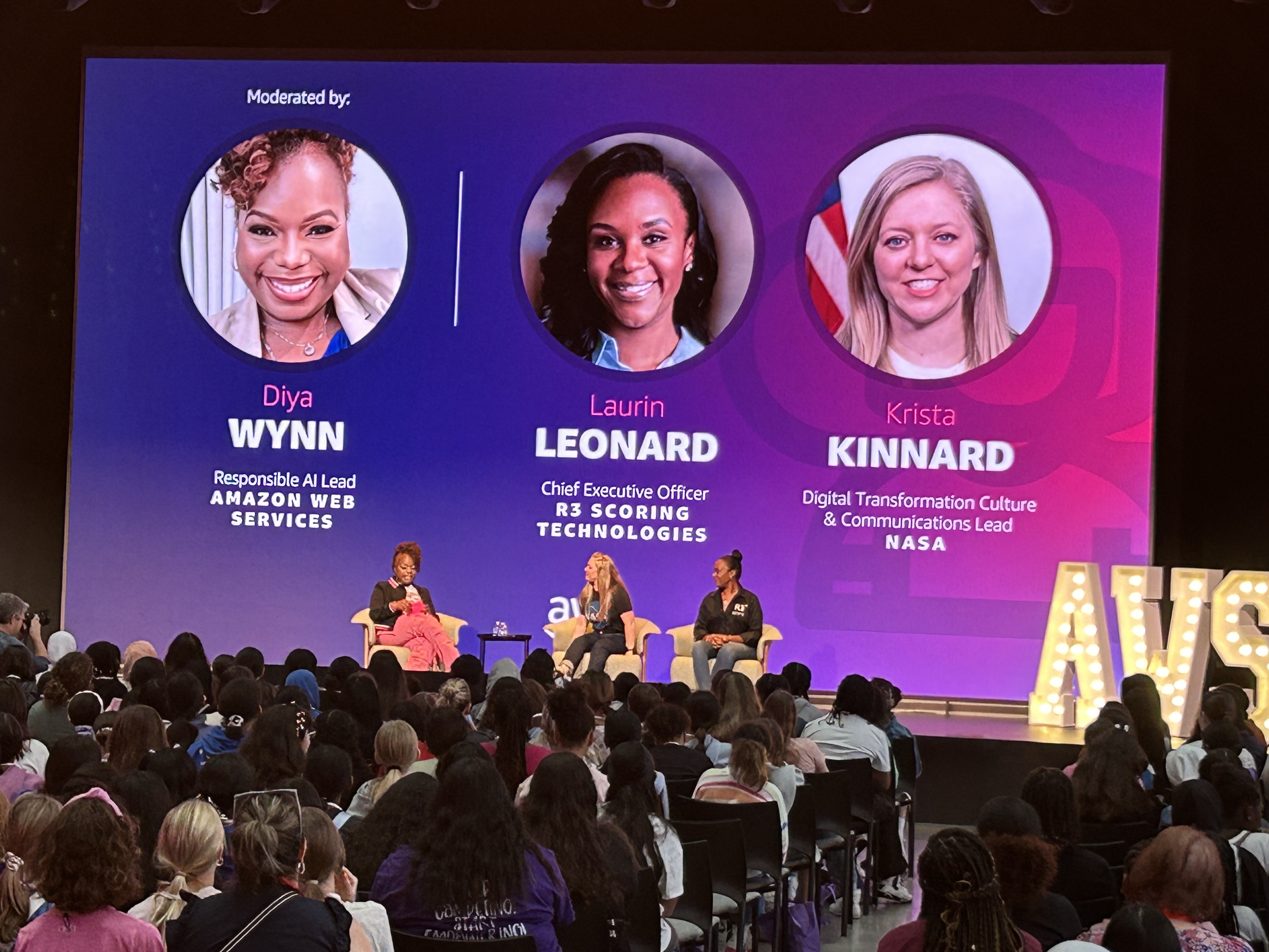 La jornada inició con el panel titulado “Revolucionando el Mañana: Mujeres, IA y la Próxima Generación de Líderes Tecnológicas”. Moderado por Wynn, el panel contó con Laurin Leonard, CEO de R3 Score, una empresa que busca reformar la justicia penal, y Krista Kinnard de la NASA.