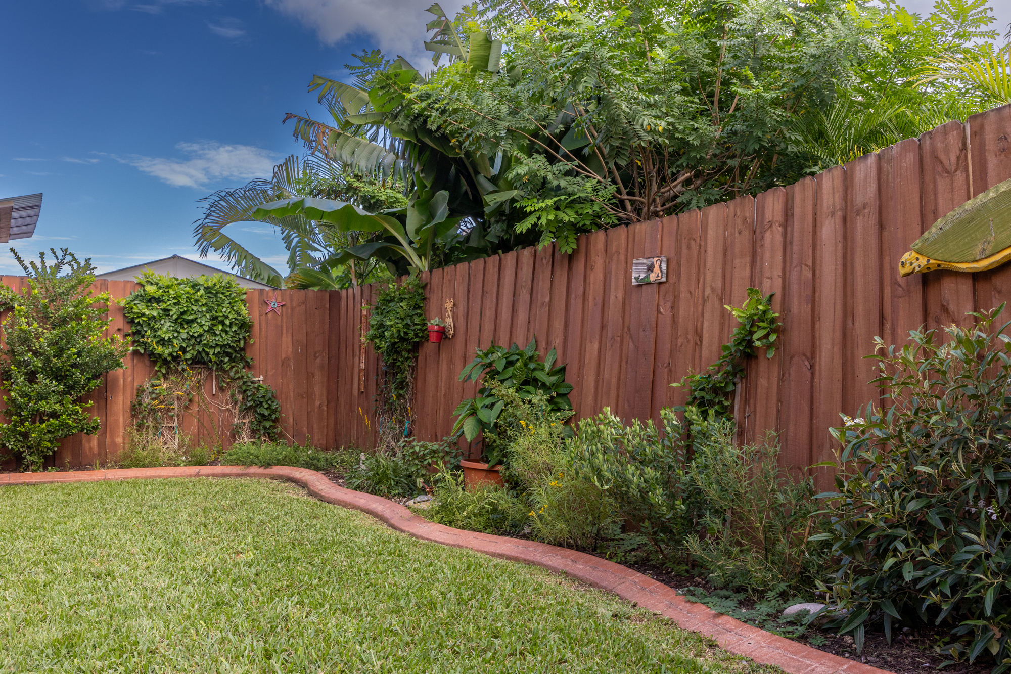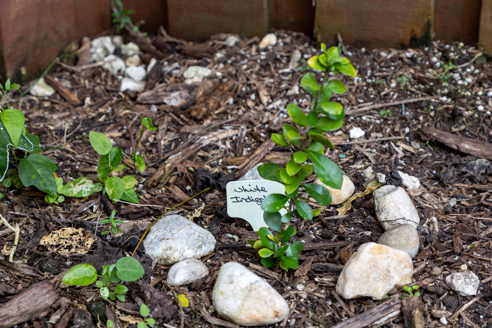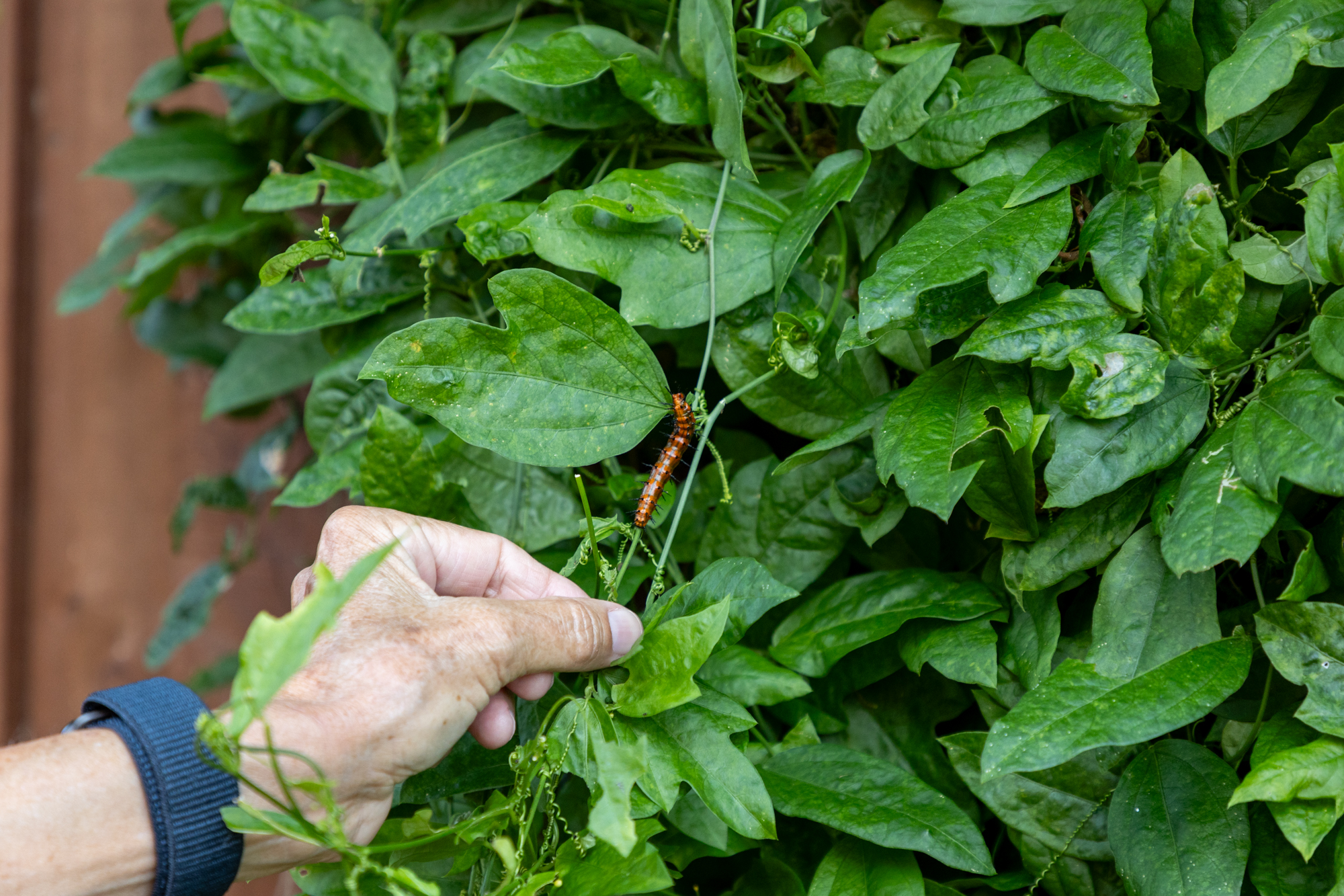 En su jardín tiene Passionvine, Swamp Milkweed, Locustberry, White y Spanish Stoppers, Lignumvitae, Firebush yWhite Indigoberry entre otras plantas nativas.