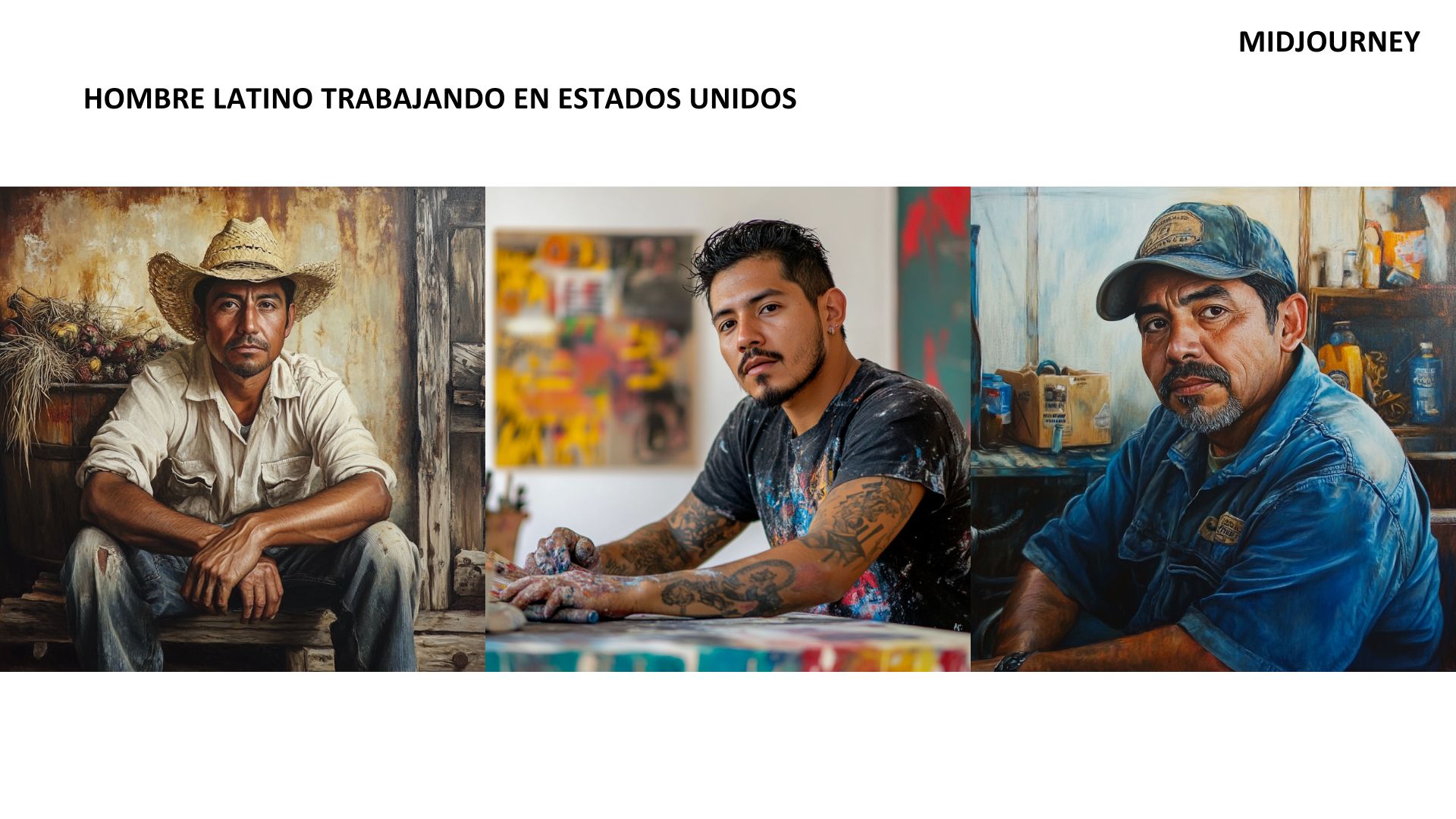 patrones culturales y estereotipos presentes en los datos con los que han sido entrenados. Para poner a prueba esta afirmación en lo que respecta a las comunidades latinas, desde Factchequeado solicitamos a DALL-E 3 y MidJourney, los principales generadores de imágenes con IA, que crearan decenas de imágenes de latinos, hombres y mujeres, trabajando en Estados Unidos. Después, pedimos a expertos que analizaran una muestra de 60 imágenes para explorar esas representaciones y los posibles estereotipos presentes en las mismas.