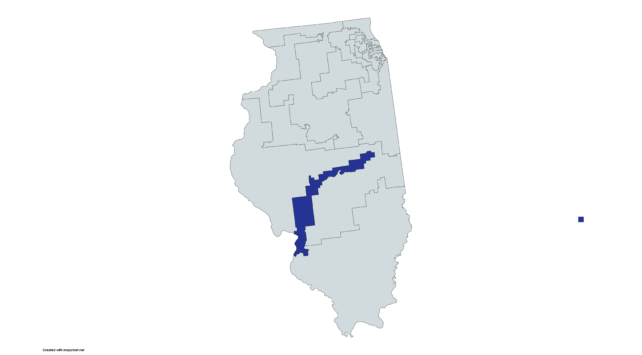 Así es como se termina con distritos que se ven como el 15º Distrito Congresional de Ohio, a la izquierda, y el 13º distrito de Illinois, a la derecha, como se ilustra a continuación usando MapChart: