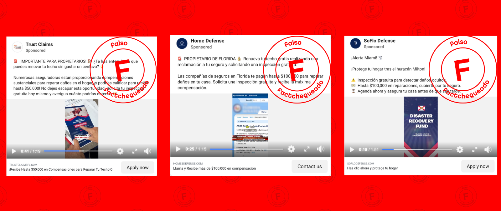 Otras consultas de scams que recibimos fueron anuncios en Facebook que promocionaron programas inexistentes de ayuda para cubrir tus deudas o para recuperarte de un desastre natural desde cuentas falsas.