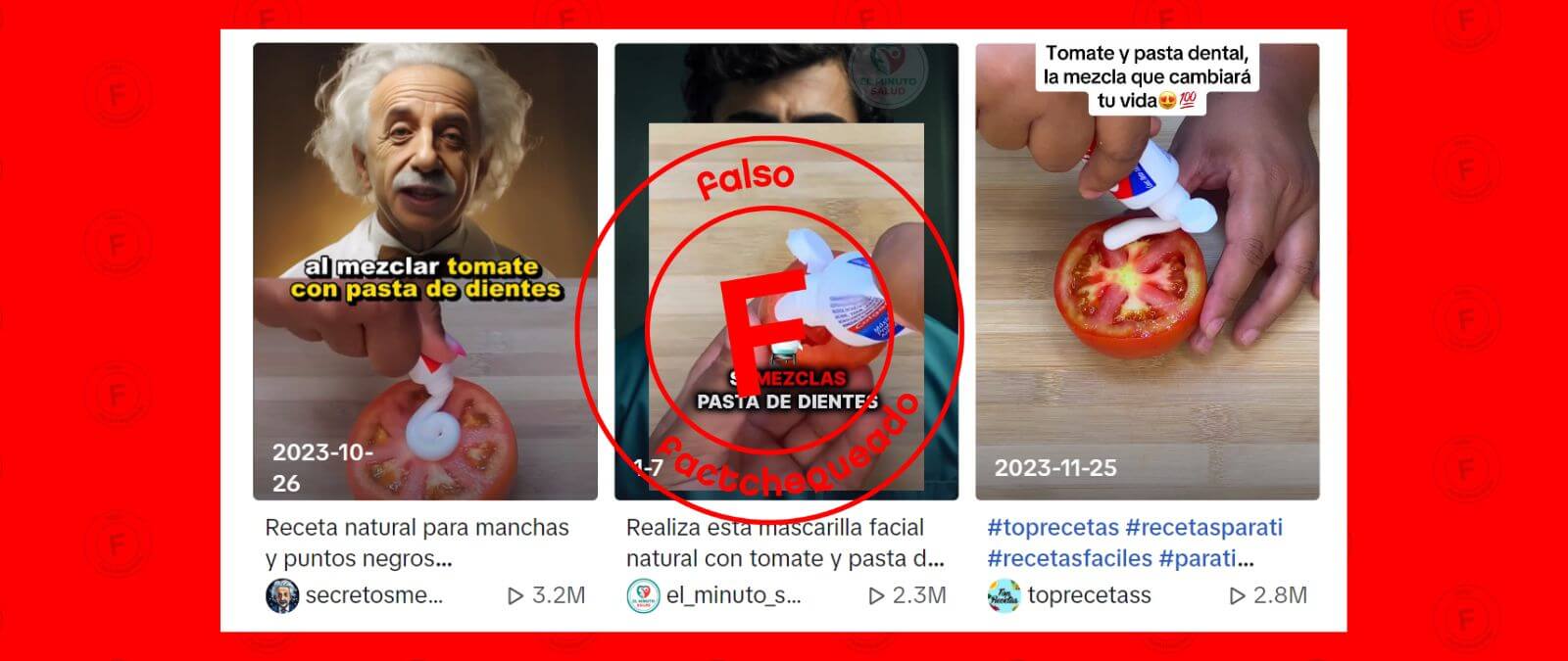 Varios videos virales (en Facebook y en TikTok en español y en inglés) indican que aplicarse en la cara jugo de tomate y pasta dental sirve para eliminar manchas, acné y espinillas. Es falso. Varios dermatólogos aseguraron a Factchequeado que esta mezcla no mejora la piel y puede causar irritaciones o dermatitis por contacto.