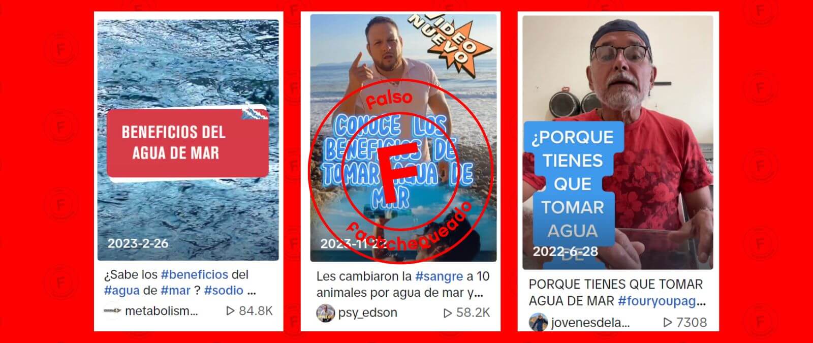 Algunos contenidos en redes sociales como TikTok (aquí, aquí y aquí) y X (antes Twitter) afirman que beber agua de mar tiene beneficios para la salud, como desintoxicar el cuerpo y curar enfermedades. Es falso. Consumir agua de mar es dañino, ya que no hidrata y puede causar deshidratación, como te contamos en esta nota de Factchequeado.