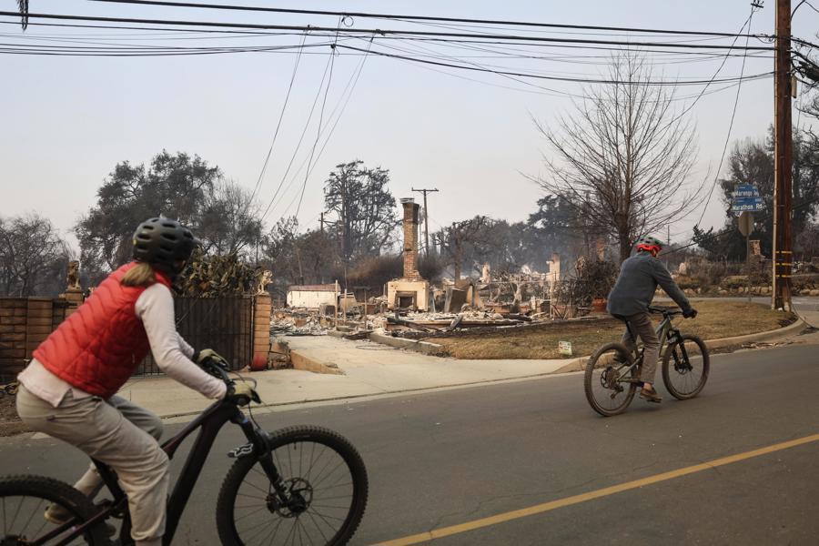 El Palisades Fire, identificado como el más destructivo, consumió más de 17,000 acres y destruyó unas 1,000 estructuras. Kristin Crowley, jefa de bomberos, afirmó que este incendio es “una de las catástrofes naturales más graves en la historia de Los Ángeles”. Una fotografía muestra casas reducidas a cenizas, con residentes viendo lo que quedó de sus vidas.
