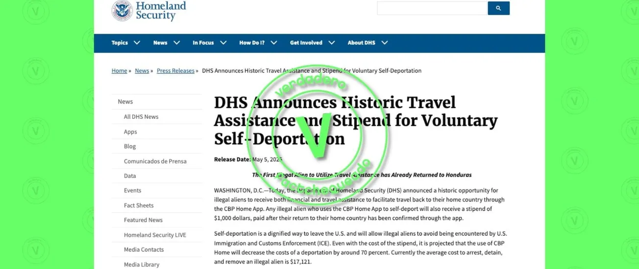 El Departamento de Seguridad Nacional (DHS) anunció el 5 de mayo de 2025 un programa de asistencia de viajes y estipendio de 1,000 dólares para aquellos inmigrantes indocumentados que decidan “autodeportarse” utilizando la aplicación de CBP Home (antes llamada CBP One). El dinero, según el DHS, se entregará una vez se confirme el regreso de la persona a través de la aplicación.