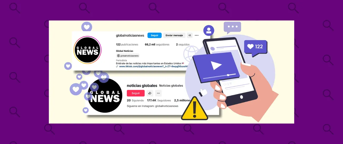 Por ejemplo, el 13 de julio Global Noticias de Instagram publicó un video junto al texto: “¡Noticia de última hora, Donald Trump anuncia algo que sobrepasa totalmente los límites!” sobre el centro de detención temporal para inmigrantes en los Everglades conocido como Alligator Alcatraz. Aproximadamente una hora después, se compartió este mismo contenido en una de las cuentas de Facebook con el mismo nombre.