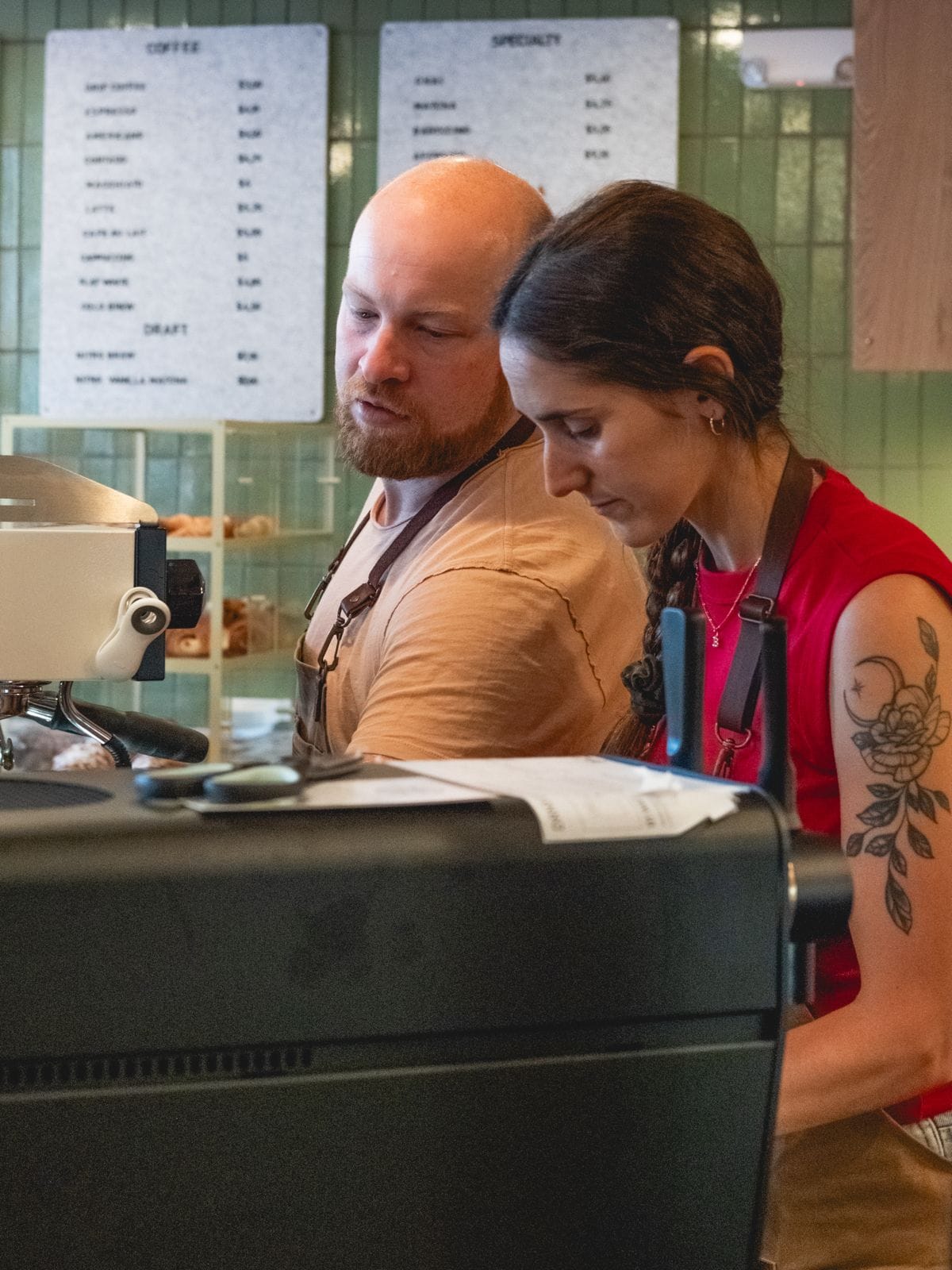 La barra sirve cafés de especialidad, incluida la mezcla propia Flower Power, tostada por Grace Street Coffee Roasters. La propuesta gastronómica—pastelería argentina y francesa y soft serve de Dolcezza—convive con un menú de la chef Jovana Urriola: empanadas argentinas, chipás, medialunas, sándwiches, toasts, bowls y ensaladas, además de bebidas de espresso calientes y frías, matcha y chai lattes y tés de hoja suelta. Hay opciones vegetarianas y sin gluten.