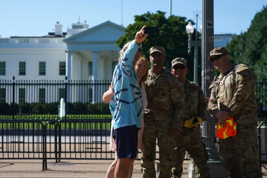En Washington DC, las calles cuentan dos historias muy diferentes. Mientras los residentes documentan arrestos y comparten mensajes de amor hacia su ciudad, los turistas están adoptando una nueva tendencia: posar para selfies con la Guardia Nacional. Este contraste refleja la polarización en la percepción pública de la capital bajo la intervención federal del presidente Donald Trump.