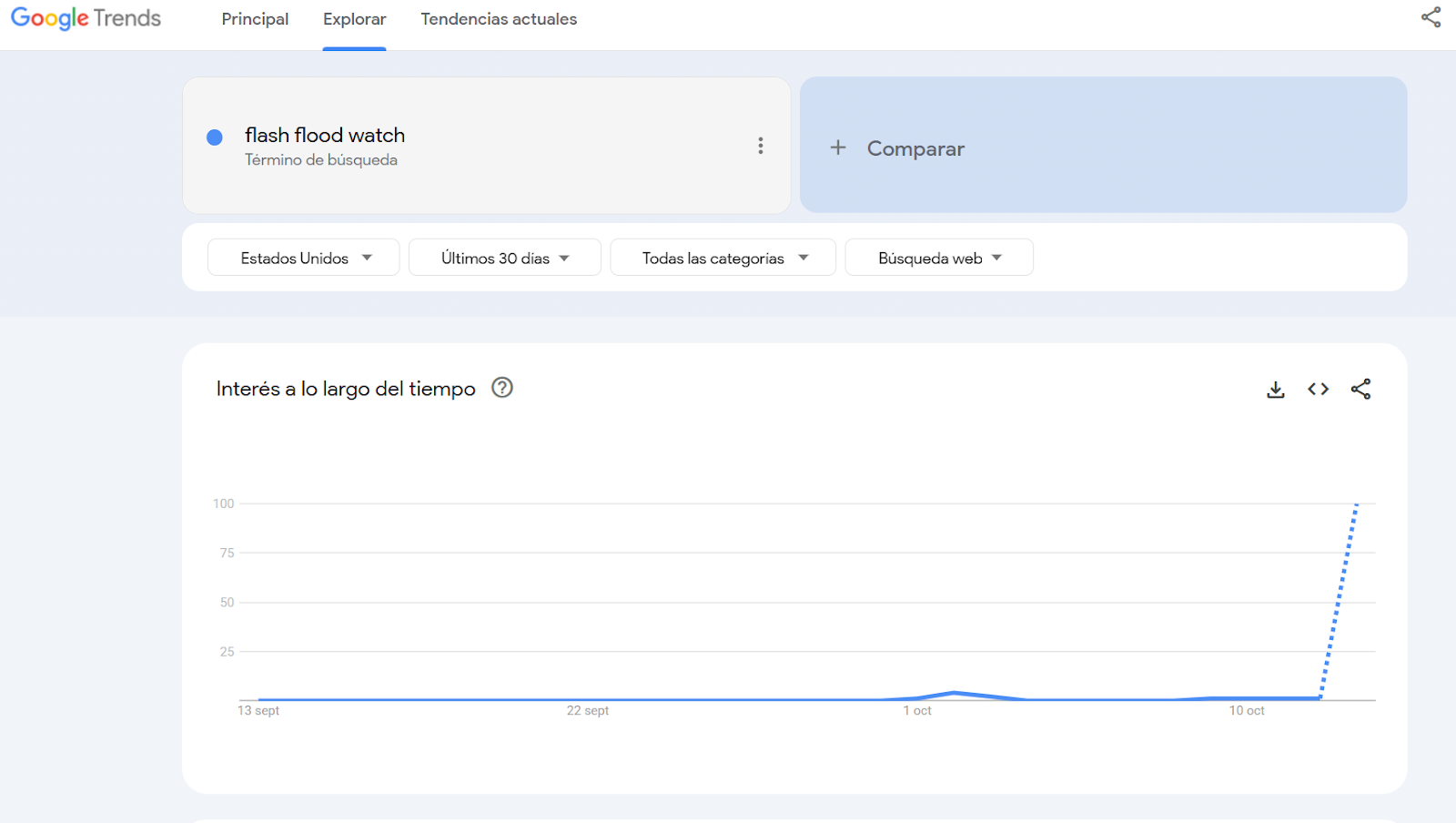 Búsquedas en Google en Estados Unidos de ‘flash flood watch’. Fuente: Google Trends.