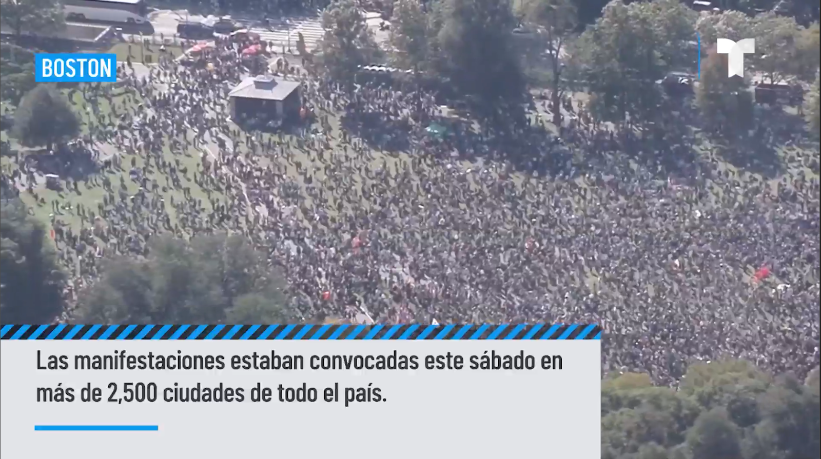 4. Captura de pantalla del video de Telemundo con las imágenes de la protesta en Boston del 18 de octubre de 2025. Lo puedes encontrar tú mismo aquí.