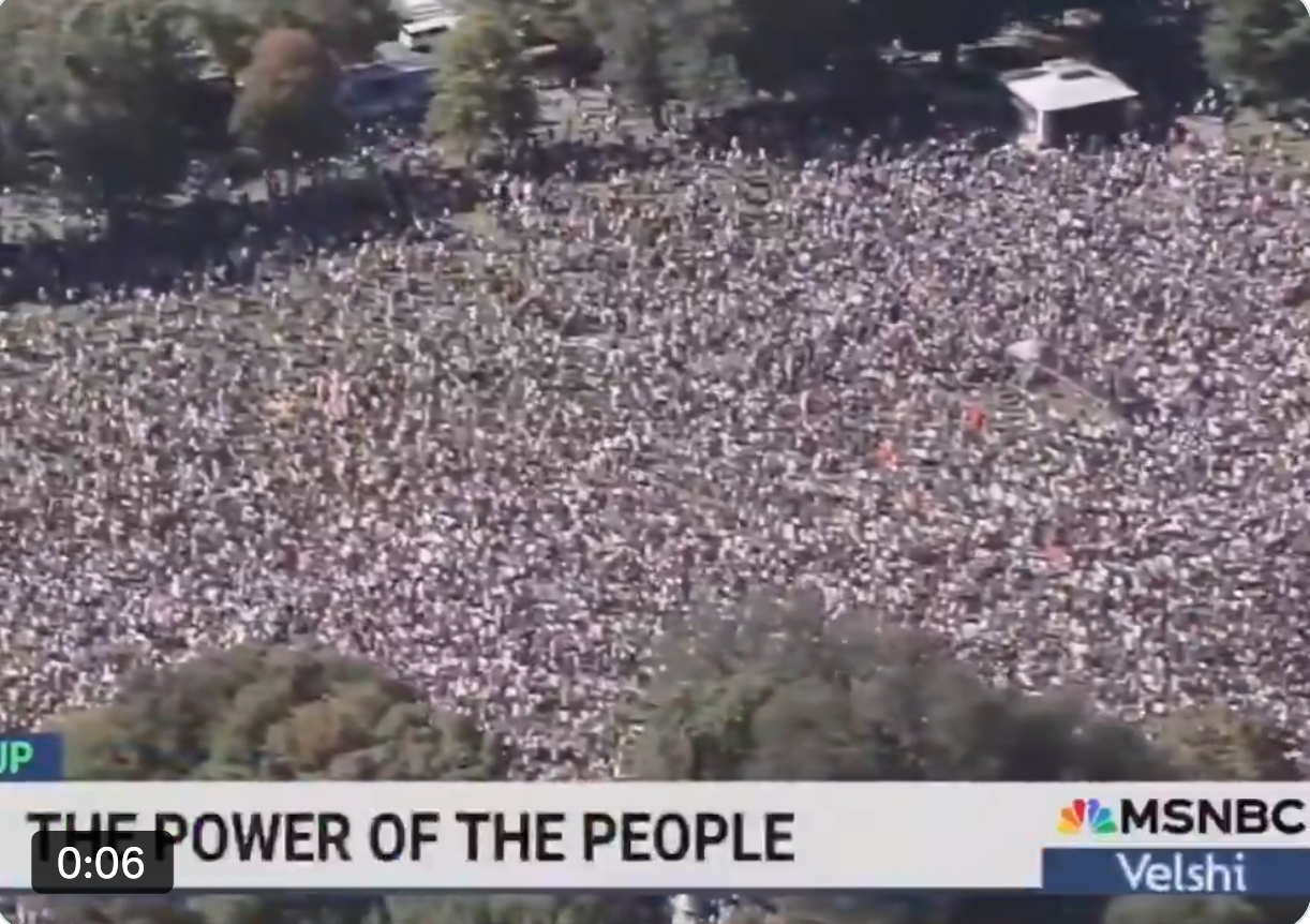 1. Captura de pantalla del video de MSNBC Boston de la protesta del 18 de octubre de 2025. Pueden verlo aquí.
