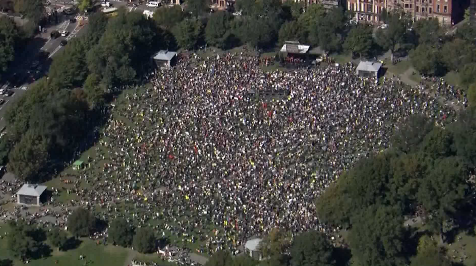 3. Captura de pantalla de una foto del canal 5 de Boston de la televisora WCVB-TV, perteneciente a la cadena ABC, que puedes encontrar tú mismo en esta nota en su sitio web, donde dice que se congregaron “decenas de miles de personas”.