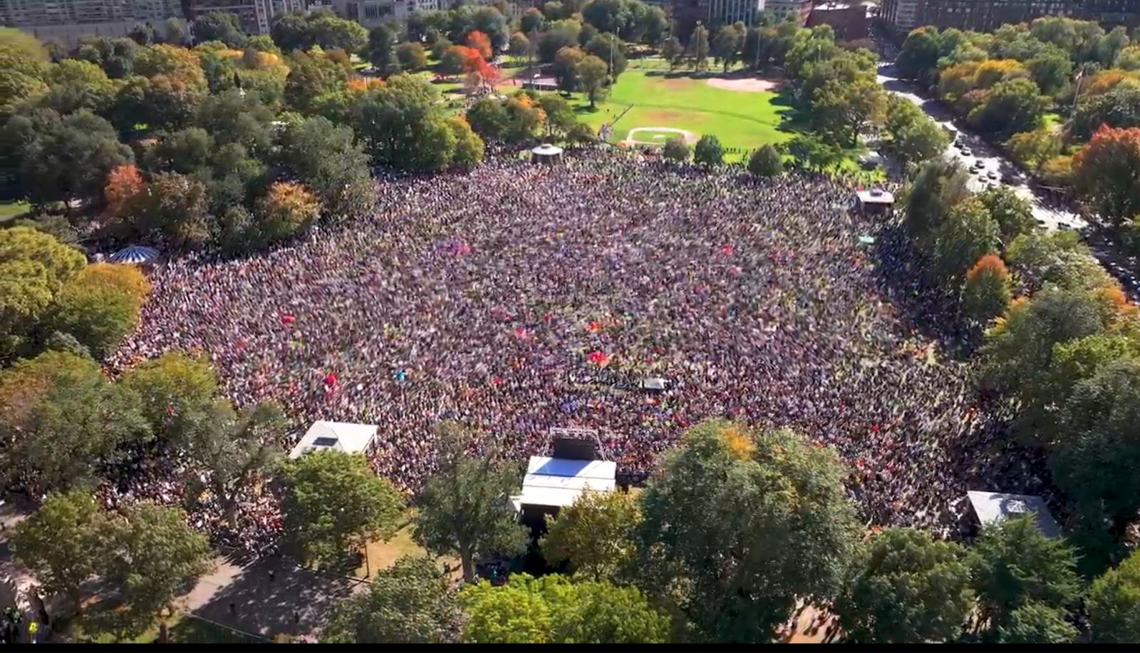 La manifestación en la capital de Massachusetts ocurrió en el Boston Common, un parque fundado en 1634, que abarca aproximadamente 200,000 metros cuadrados y está delimitado por las calles Tremont, Park, Beacon, Charles y Boylston. La protesta se realizó el 18 de octubre de 2025 desde las 12:00 horas y terminó alrededor de las 15:00 horas, según revisamos en medios locales.