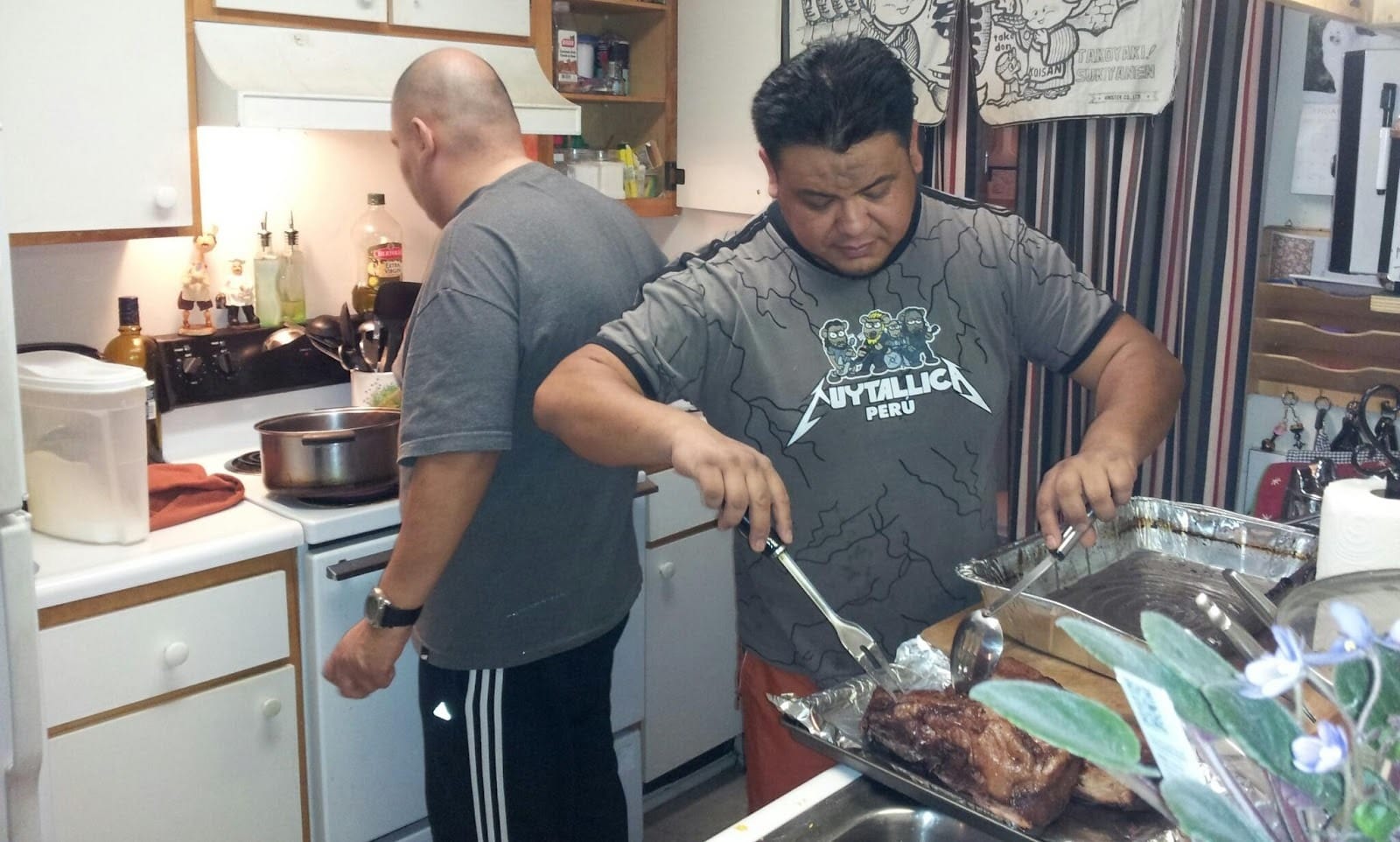 Este año me animé a preparar algo distinto: un pavito en salsa anticuchera, con ají panca, ají mirasol, chicha de jora, vinagre blanco, ajo, comino, orégano, sal y pimienta. Lo dejo marinar dos días, y lo relleno con arroz, trigo, choclo, salchichas kielbasa, un toque de miel y un chorrito de chicha de jora. Te juro que el olor que sale del horno es tan tentador que ni el tío más gruñón puede quejarse.