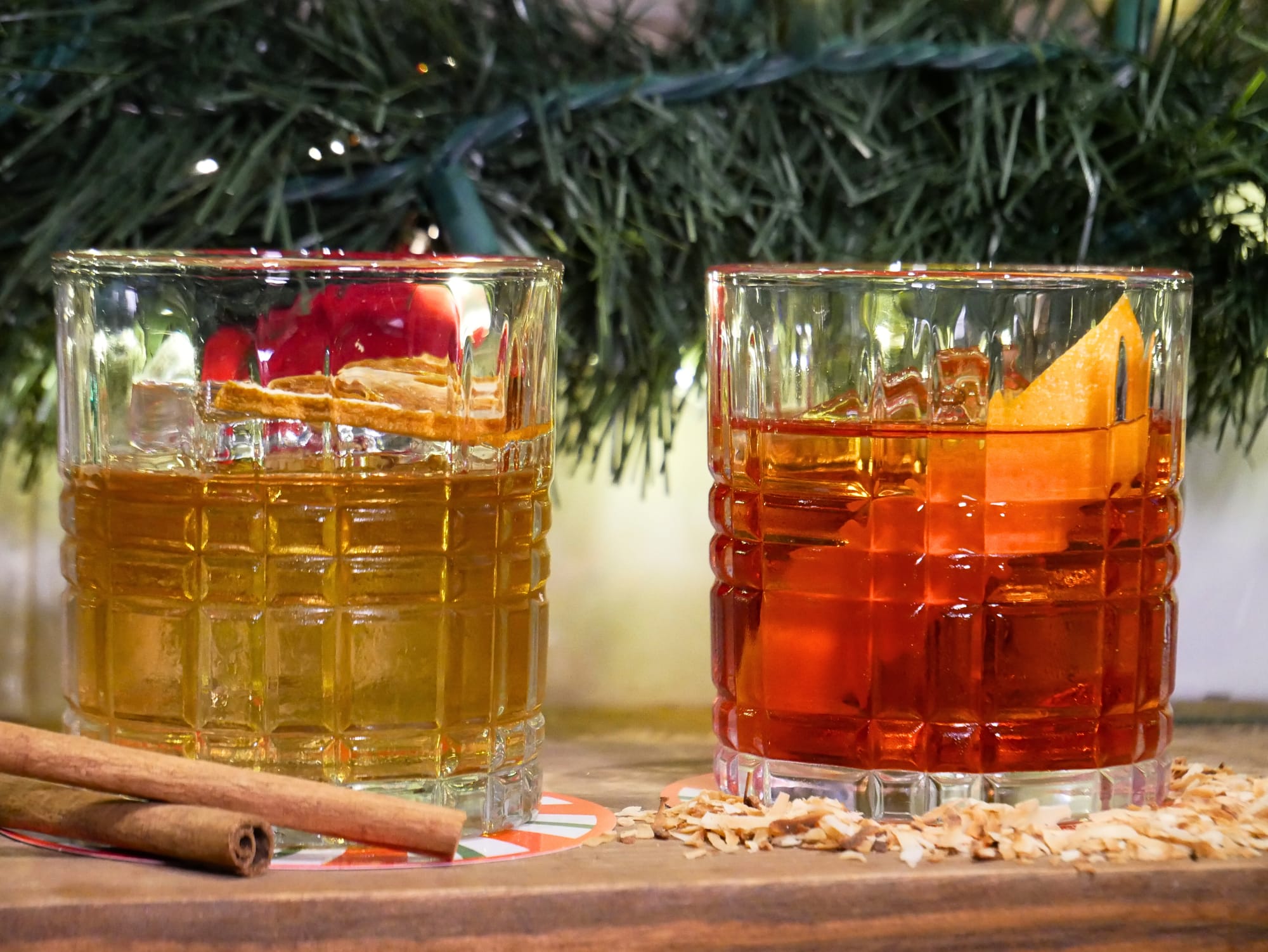 Aunque el coquito es el alma del lugar, la carta ofrece otras bebidas festivas que despiertan el ánimo navideño. Entre las favoritas están el Smoked Cinnamon Old Fashioned, con notas ahumadas y de canela; el Cranberry Thyme Margarita, que equilibra acidez y frescura; y el Ornament Negroni, una reinterpretación colorida del clásico italiano.