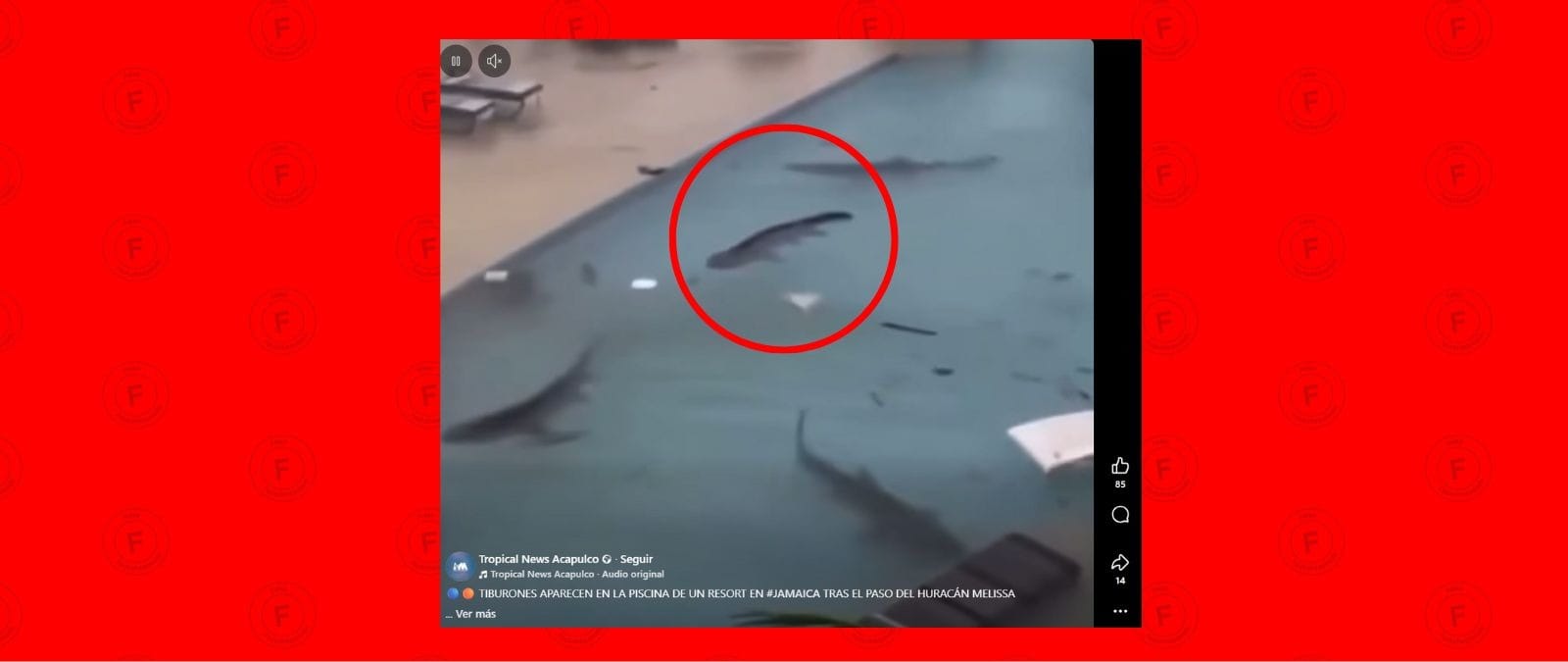- Circula en redes sociales un video que supuestamente muestra tiburones nadando en la piscina de un hotel en Jamaica tras el paso del huracán Melissa, que azotó ese país, además de Cuba, Haití y República Dominicana, a finales de octubre de 2025.