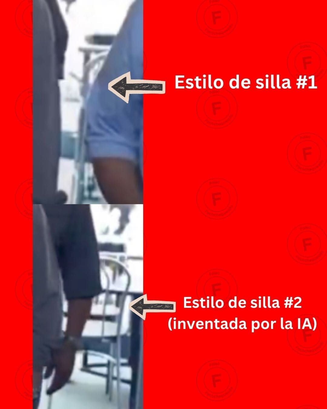 - El video generado con IA tiene fallas: cambia el estilo de una silla e inventa el rostro de un hombre cuya cara no es visible en la foto original.