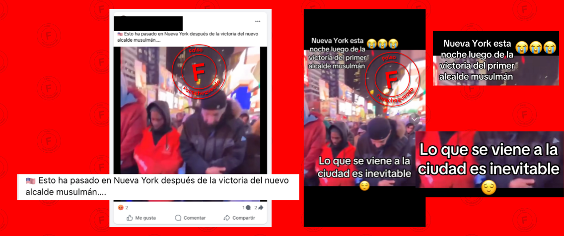 En redes sociales se compartió un video que supuestamente muestra a una multitud de “musulmanes” congregada en Times Square tras la victoria de Mamdani. Sin embargo, el video corresponde a la celebración del Ramadán, mes en el que la población musulmana ayuna desde el amanecer hasta el ocaso, y fue grabado en marzo de 2024, según EFE Verifica.