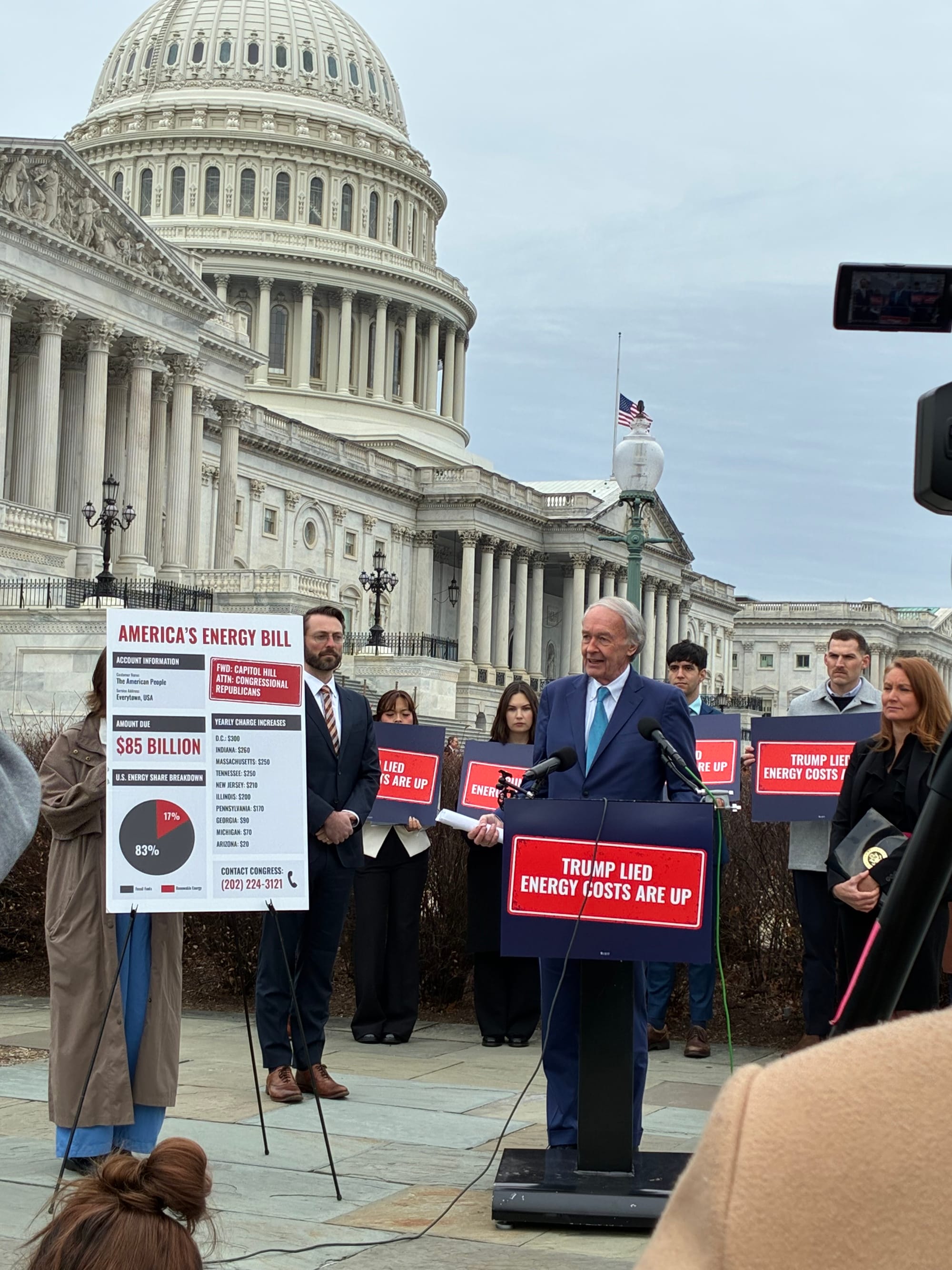 "Todo esto está resultando en menos trabajos, menos energía disponible, menos dinero en su bolsillo", dijo el senador Markey. "Esa es la verdadera promesa de Trump".