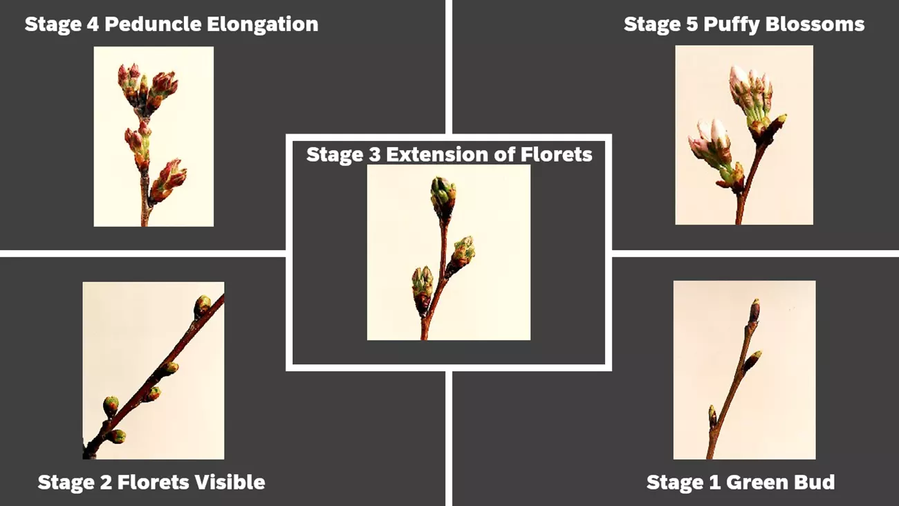 En febrero, las temperaturas estuvieron más de 5 grados por debajo del promedio, lo que significa que los árboles han acumulado menos “Growing Degree Days”, una medida que indica cuánto calor han recibido las plantas para comenzar a florecer. Desde el 1 de febrero, solo se ha registrado un día de crecimiento, comparado con 22 días el año pasado en la misma fecha.