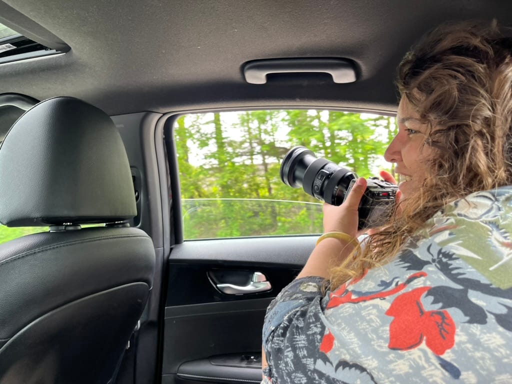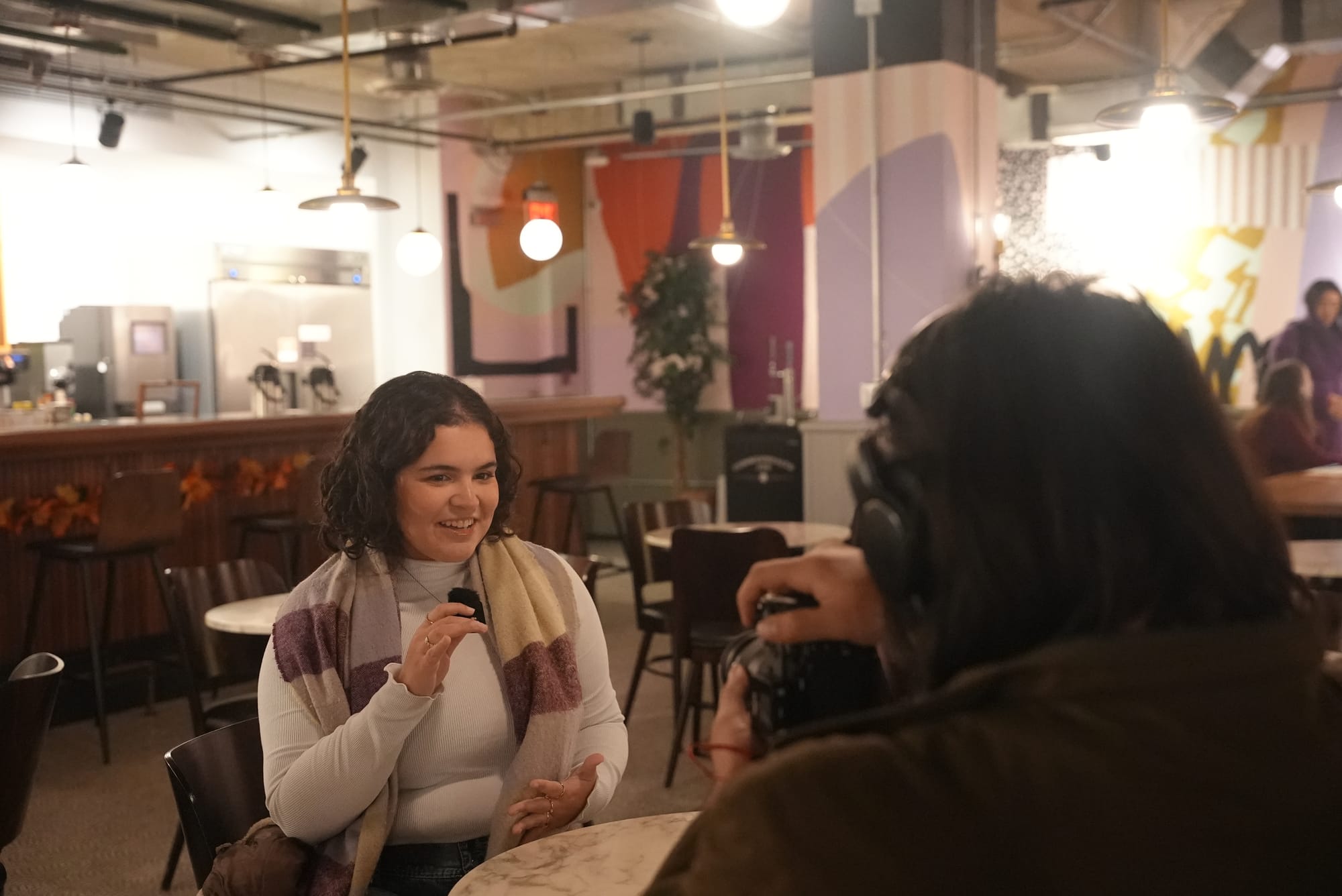 Génesis trabaja del otro lado de la cámara, donde la historia no se escucha sino se ve. En tres años ha aprendido que la cámara captura lo que las palabras no alcanzan. Lo entendió con claridad mientras filmaba a Daniel en Arepateca, su negocio, y vio a través del lente algo que ningún artículo podría reproducir: el orgullo de alguien que construyó algo desde cero en un país que no siempre te lo reconoce. Su madre lo cubría en la cocina mientras él hablaba.
