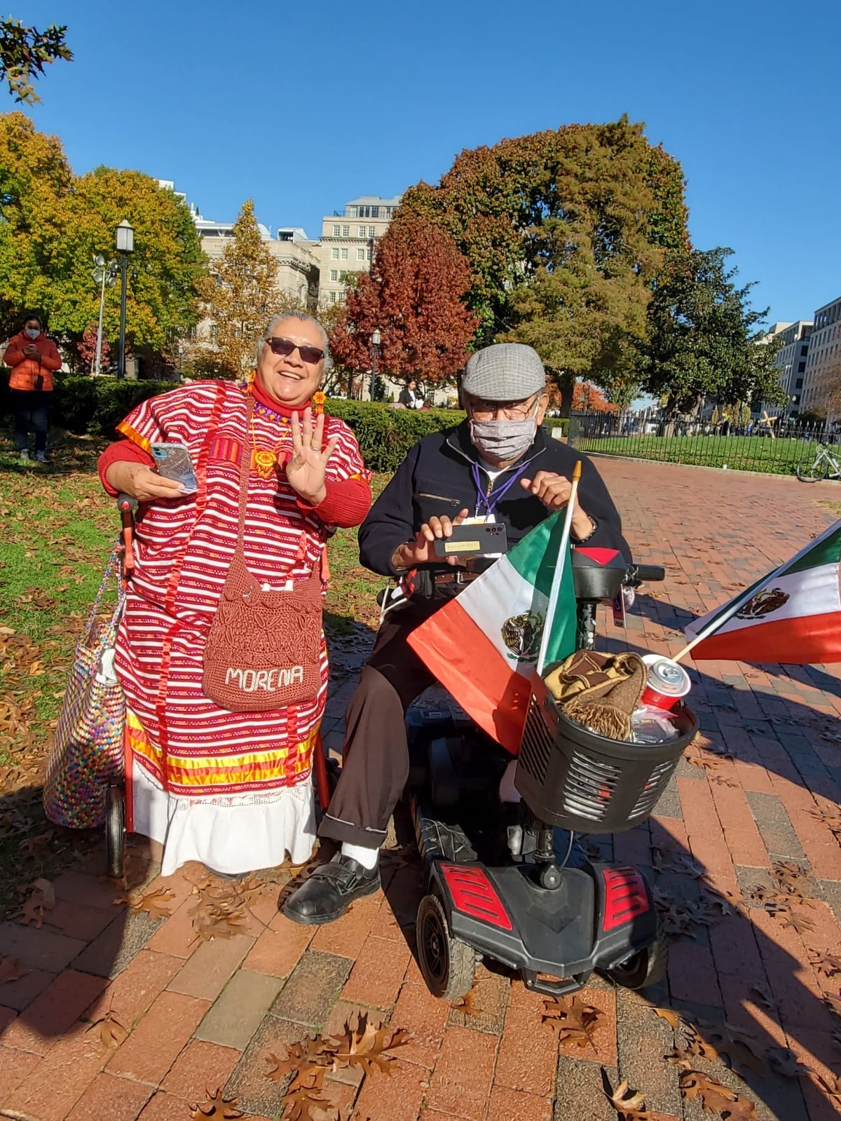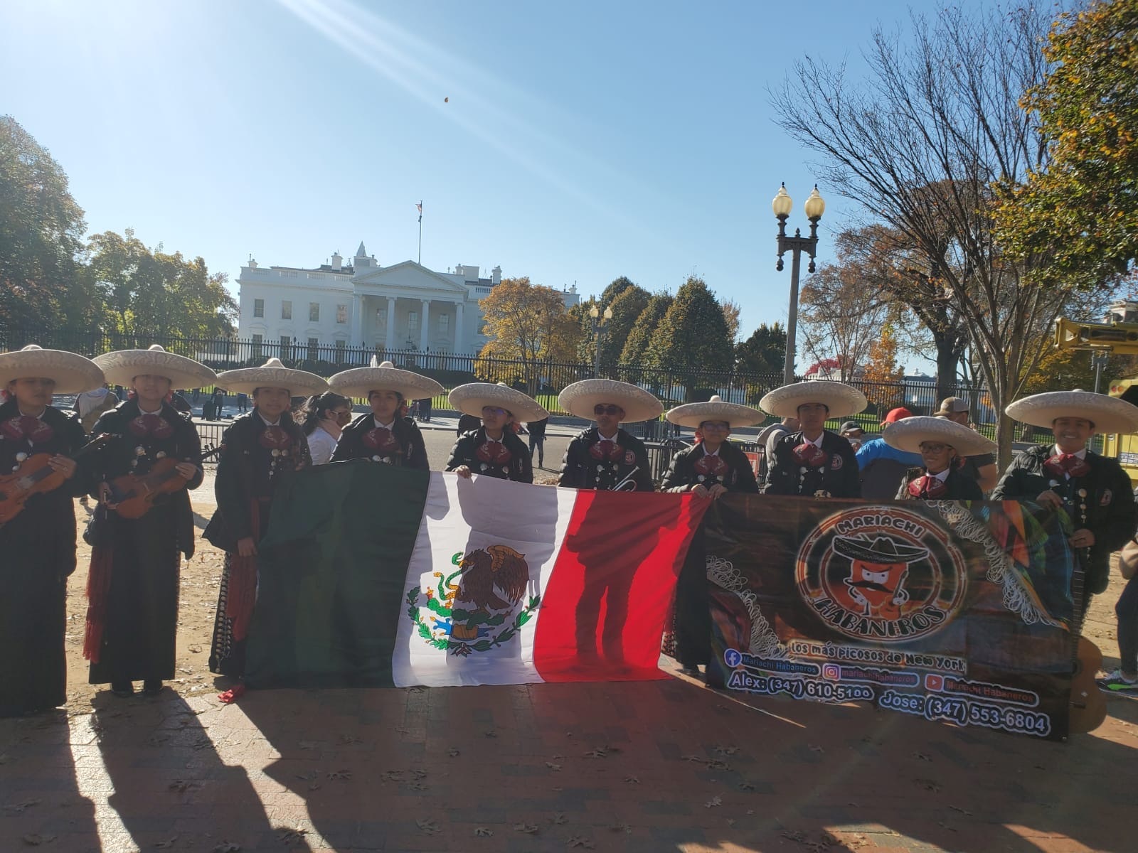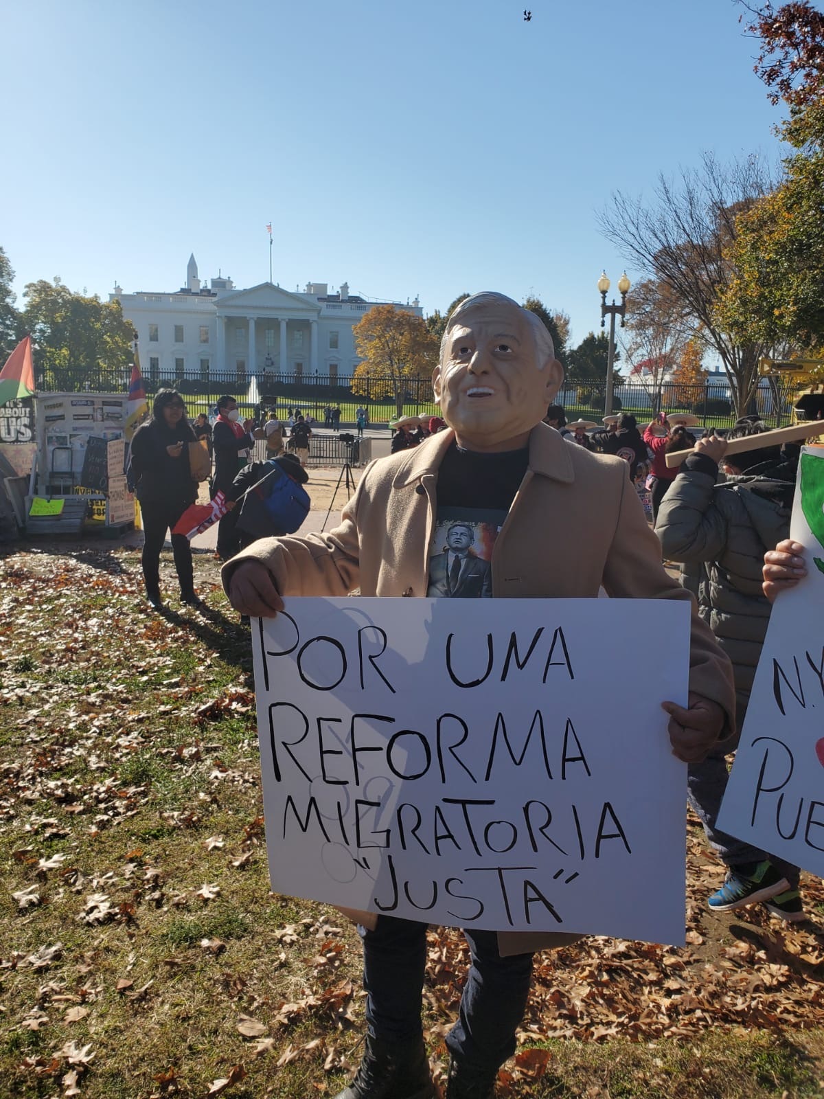 Miembros de la comunidad mexicana se congregaron en el parque Lafayette Square de Washington, DC - justo al norte de la Casa Blanca - para exigirle a Biden que apruebe un proyecto de reforma migratoria a través de su agenda de gasto social.